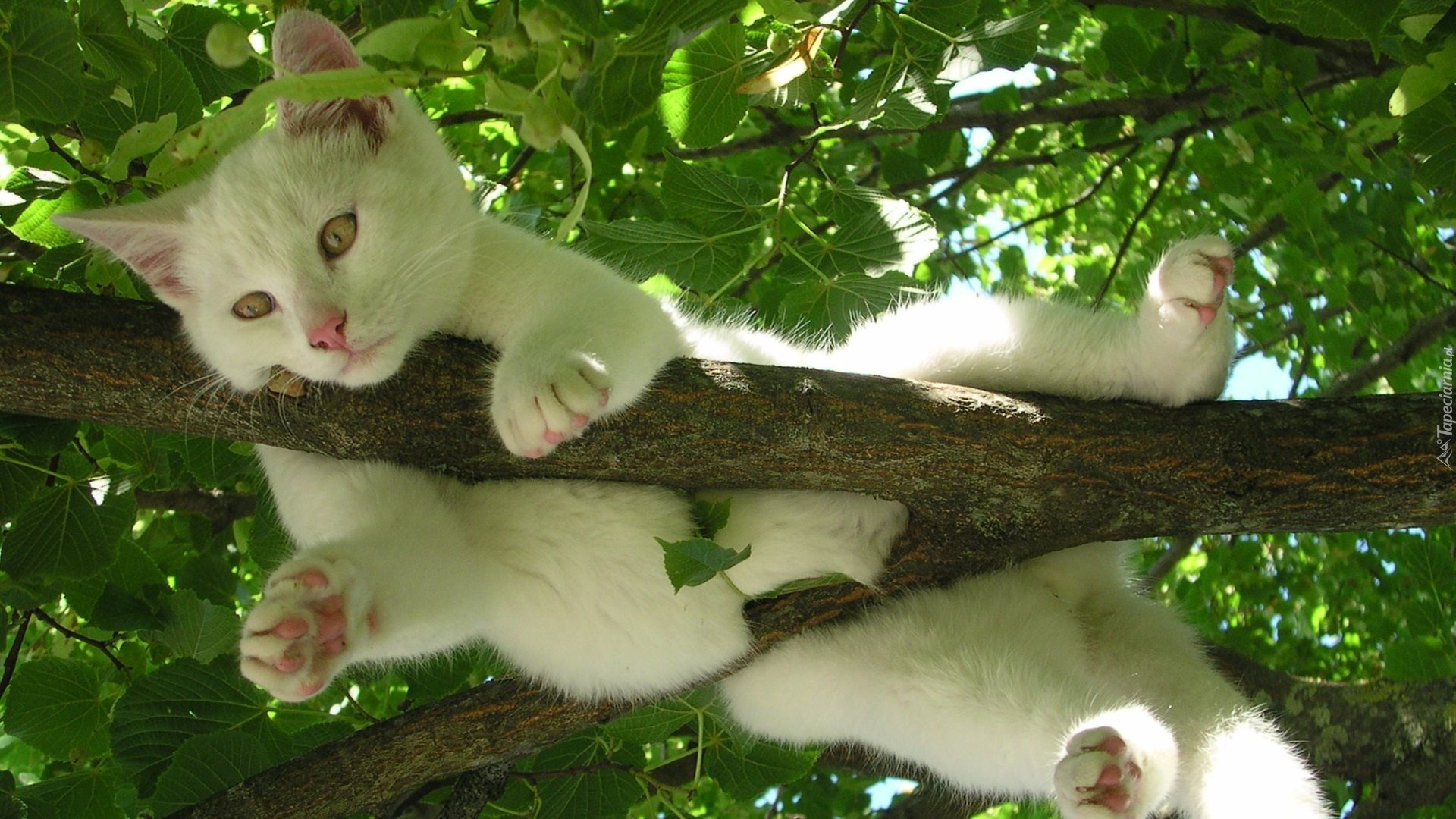 Edytor tapety: Biały, Kot, Drzewo, Konar