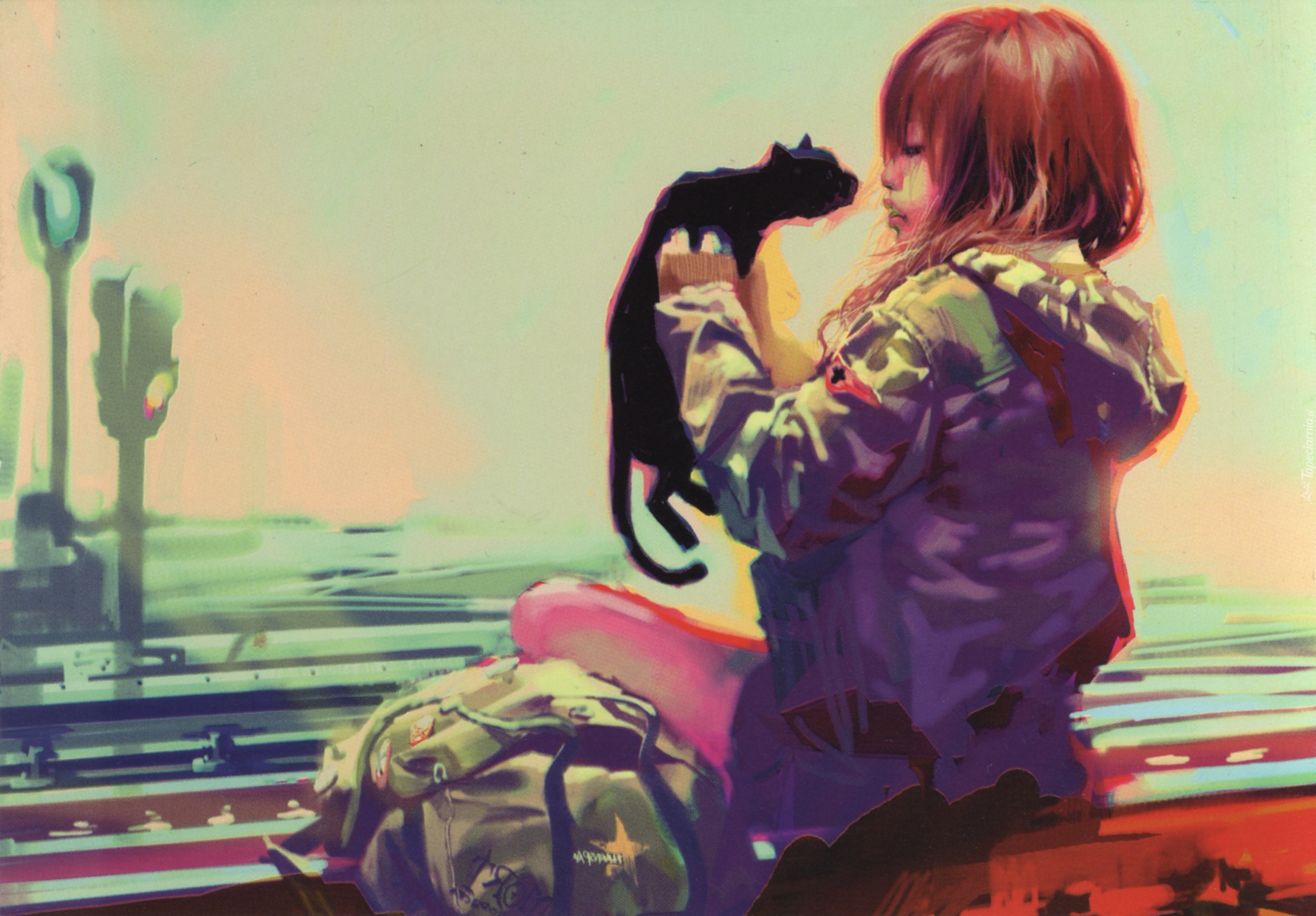 Edytor tapety: Obraz, Benjamina, Zhang, Bina, Dziewczynka, Kotek