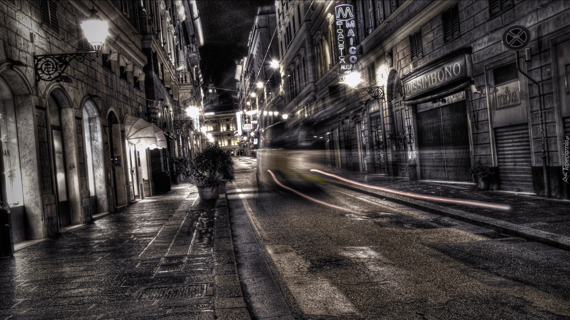 Edytor tapety: Europa, Włochy, Genua, Ulica, Wieczór, Domy, Światła