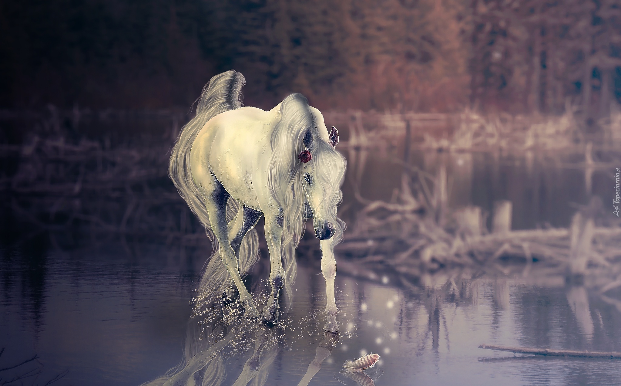 Edytor tapety: Koń, Woda, Odbicie