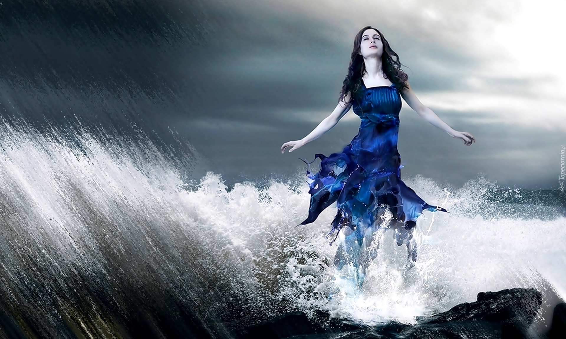 Edytor tapety: Kobieta, Niebieska, Sukienka