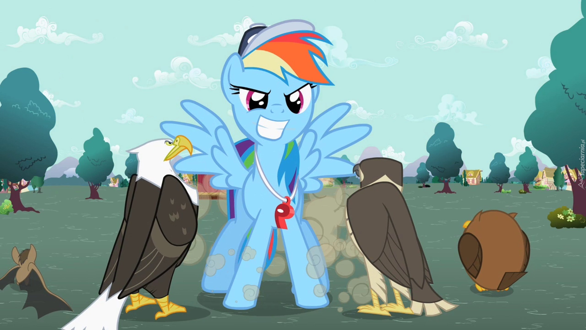 Edytor tapety: Rainbow Dash, Trener, Sowa, Orzeł