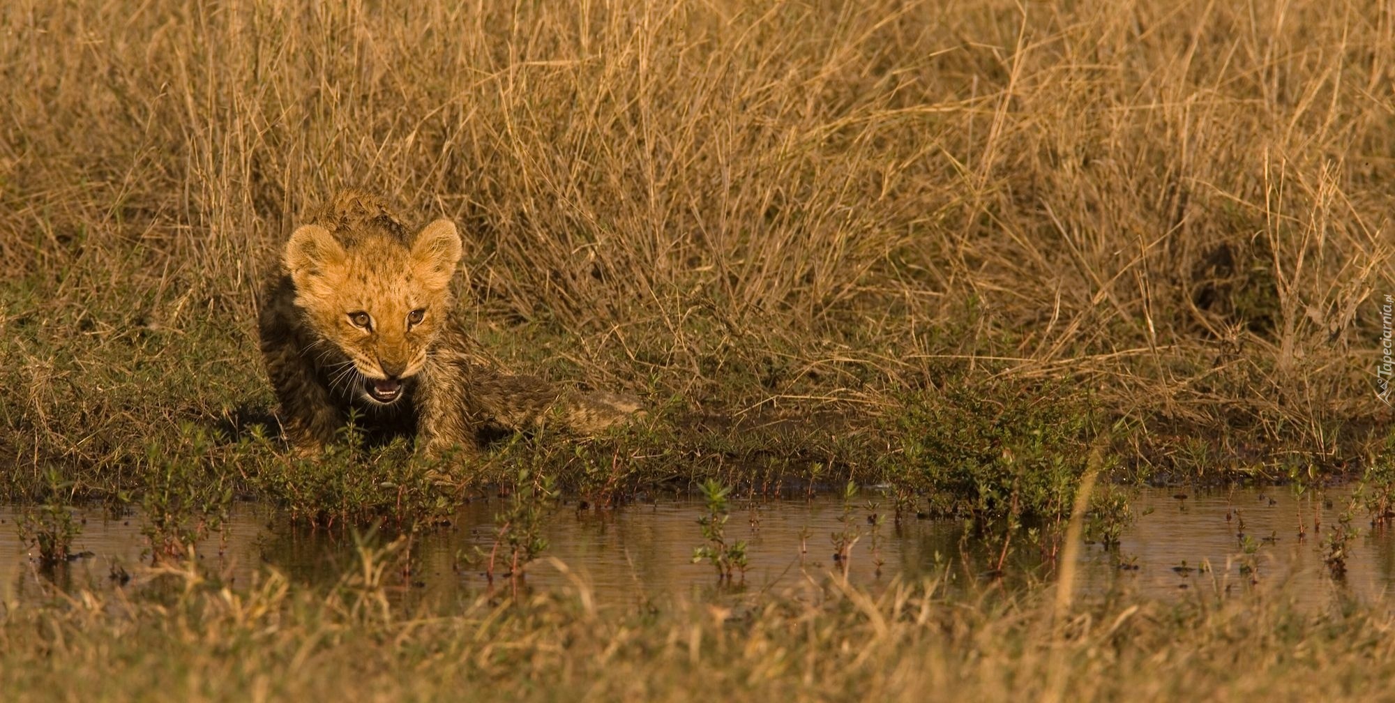 Edytor tapety: Lwiątko, Woda, Trawa
