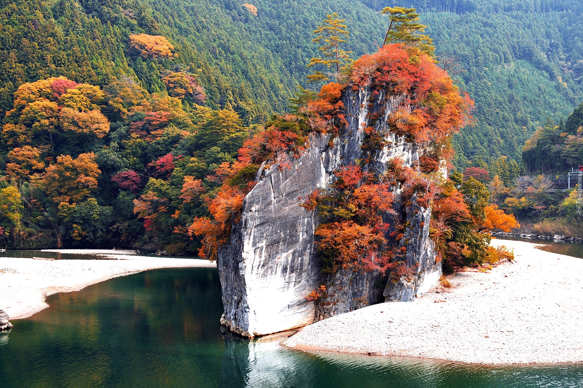 Edytor tapety: Jesień, Góry, Lasy, Jezioro, Skała
