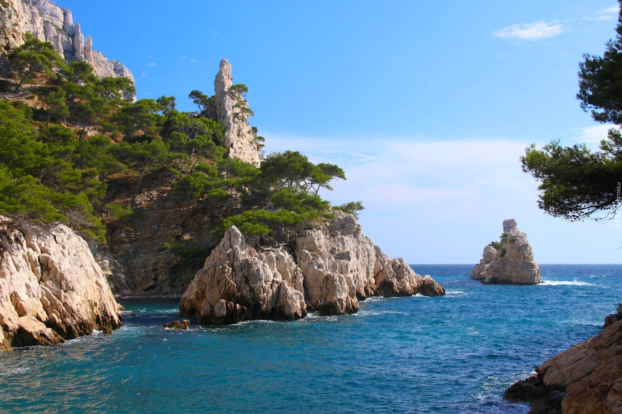 Edytor tapety: Morze, Skały, Drzewa