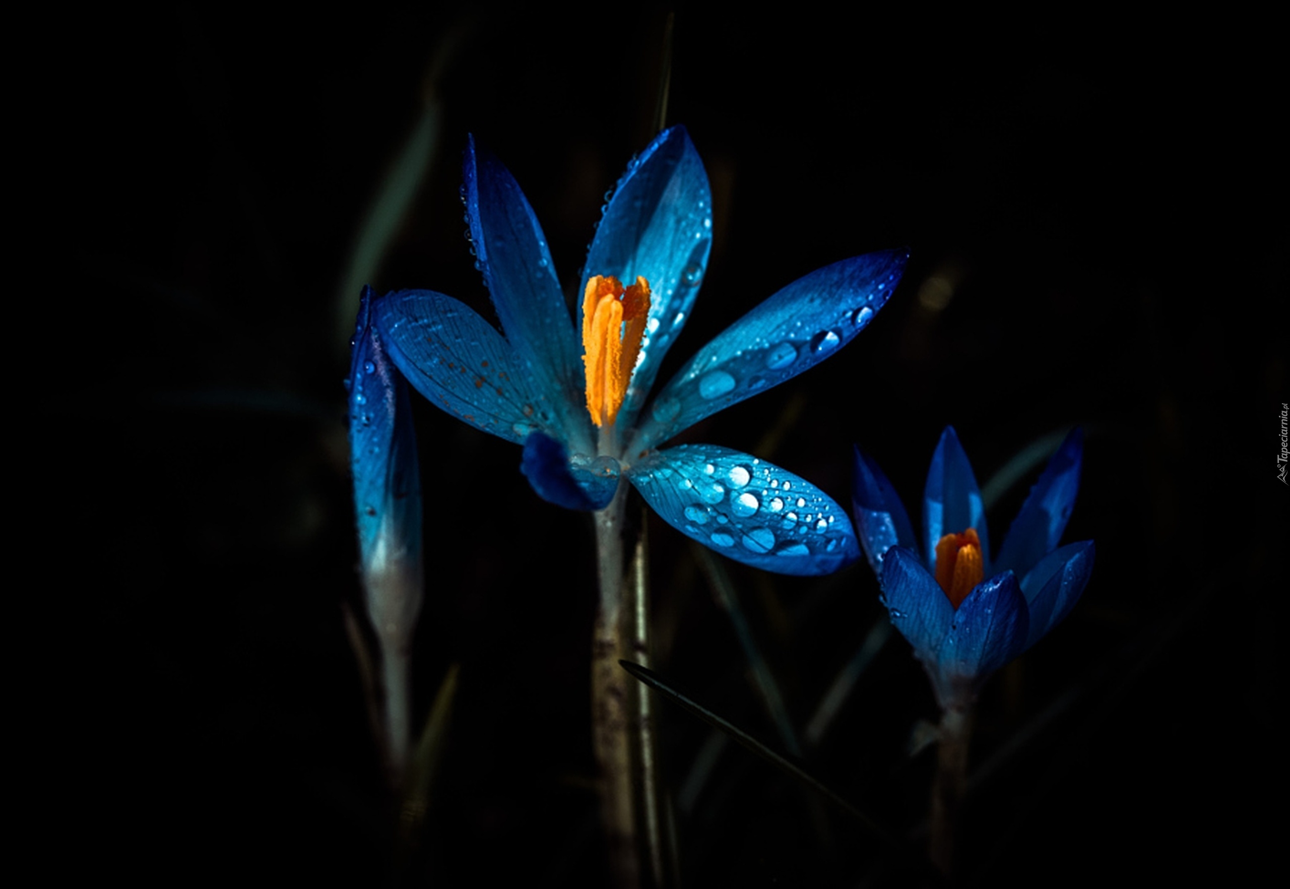 Edytor tapety: Niebieskie Kwiaty, Krople, Światło