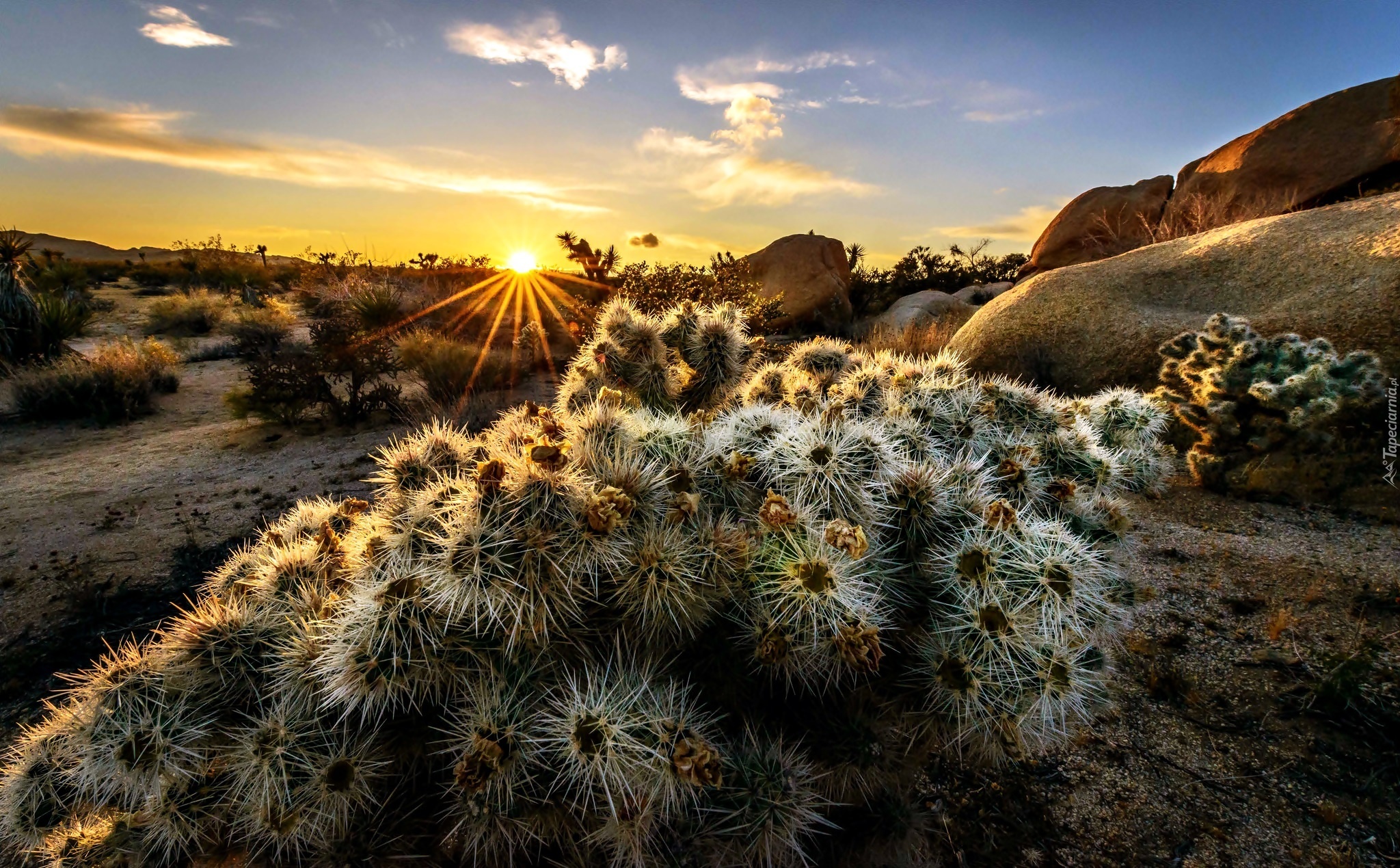 Edytor tapety: Park, Narodowy, Joshua Trees, Kalifornia, Kwitnące, Kaktusy