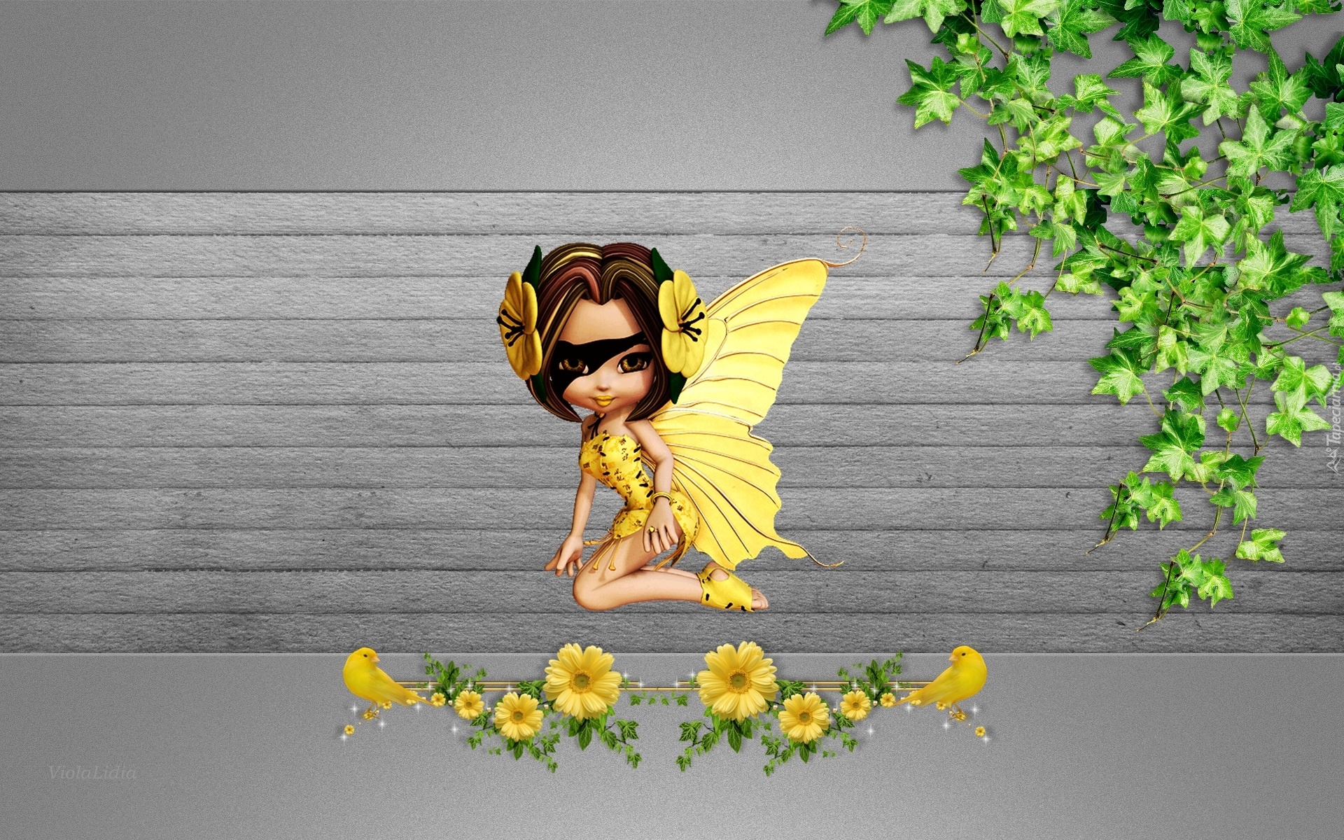 Edytor tapety: Grafika, Kwiaty, Bluszcz, Elf, Motyl