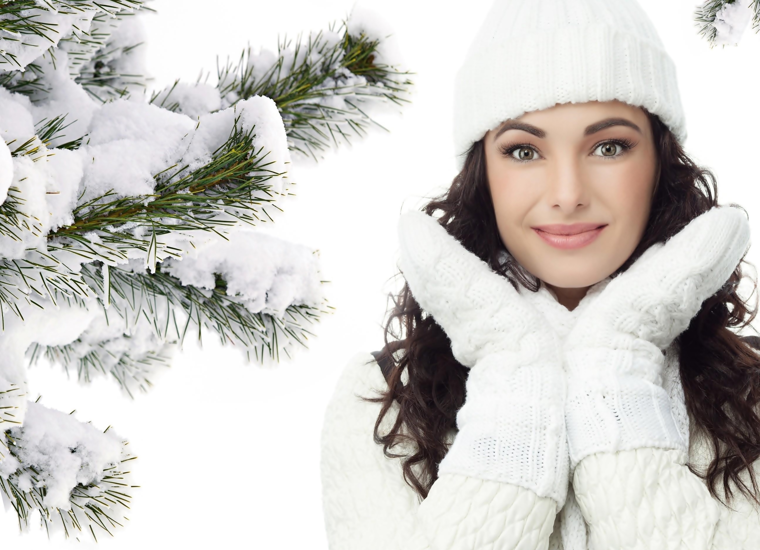 Edytor tapety: Gałązki, Śnieg, Kobieta, Czapka, Rękawice