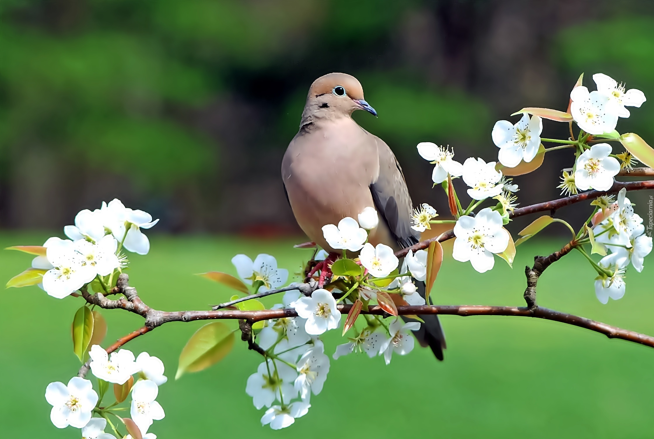 Edytor tapety: Ptak, Kwitnąca, Gałązka