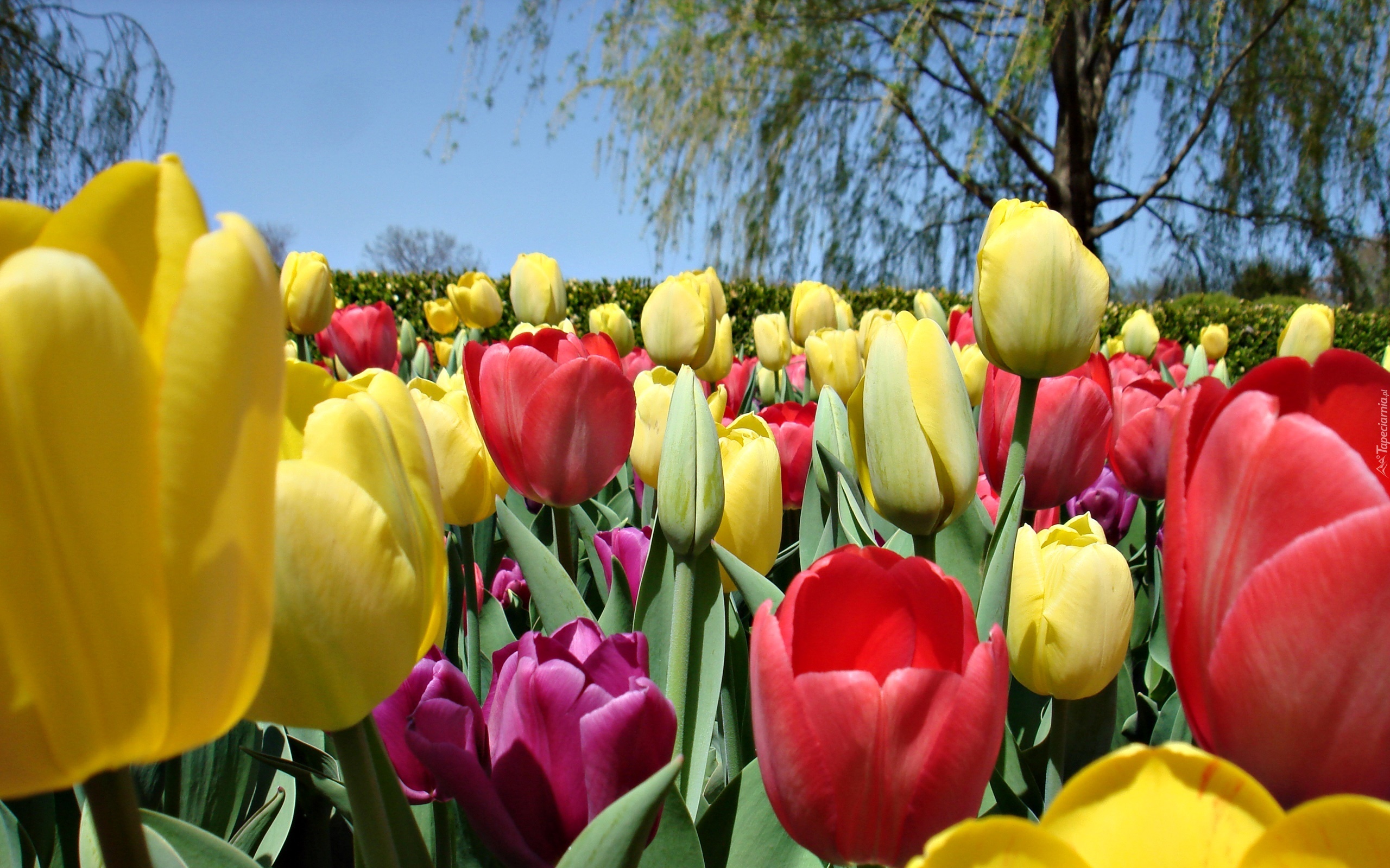 Edytor tapety: Tulipany, Drzewa, Wiosna
