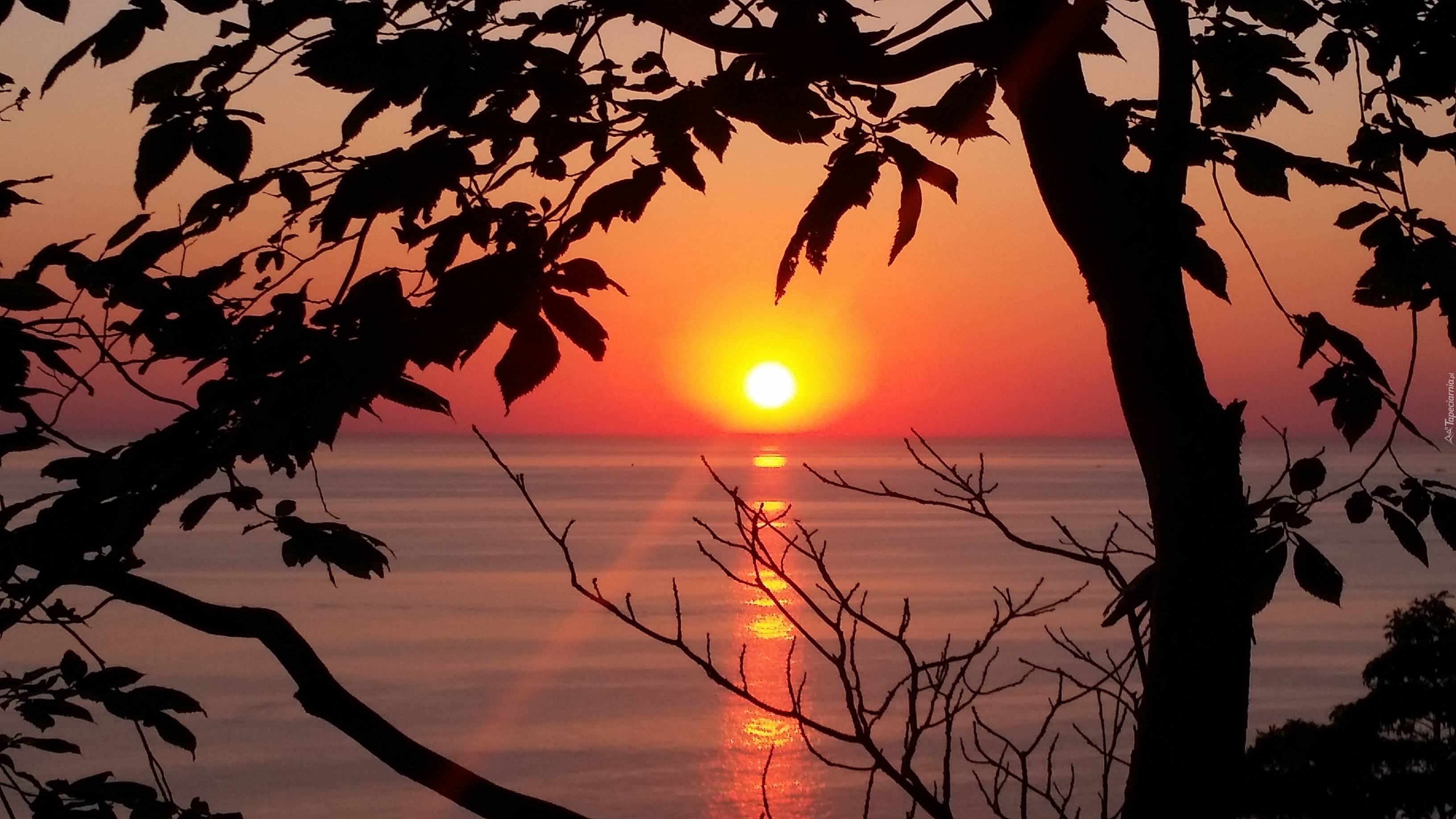 Edytor tapety: Zachód słońca, Jezioro Michigan, Drzewa