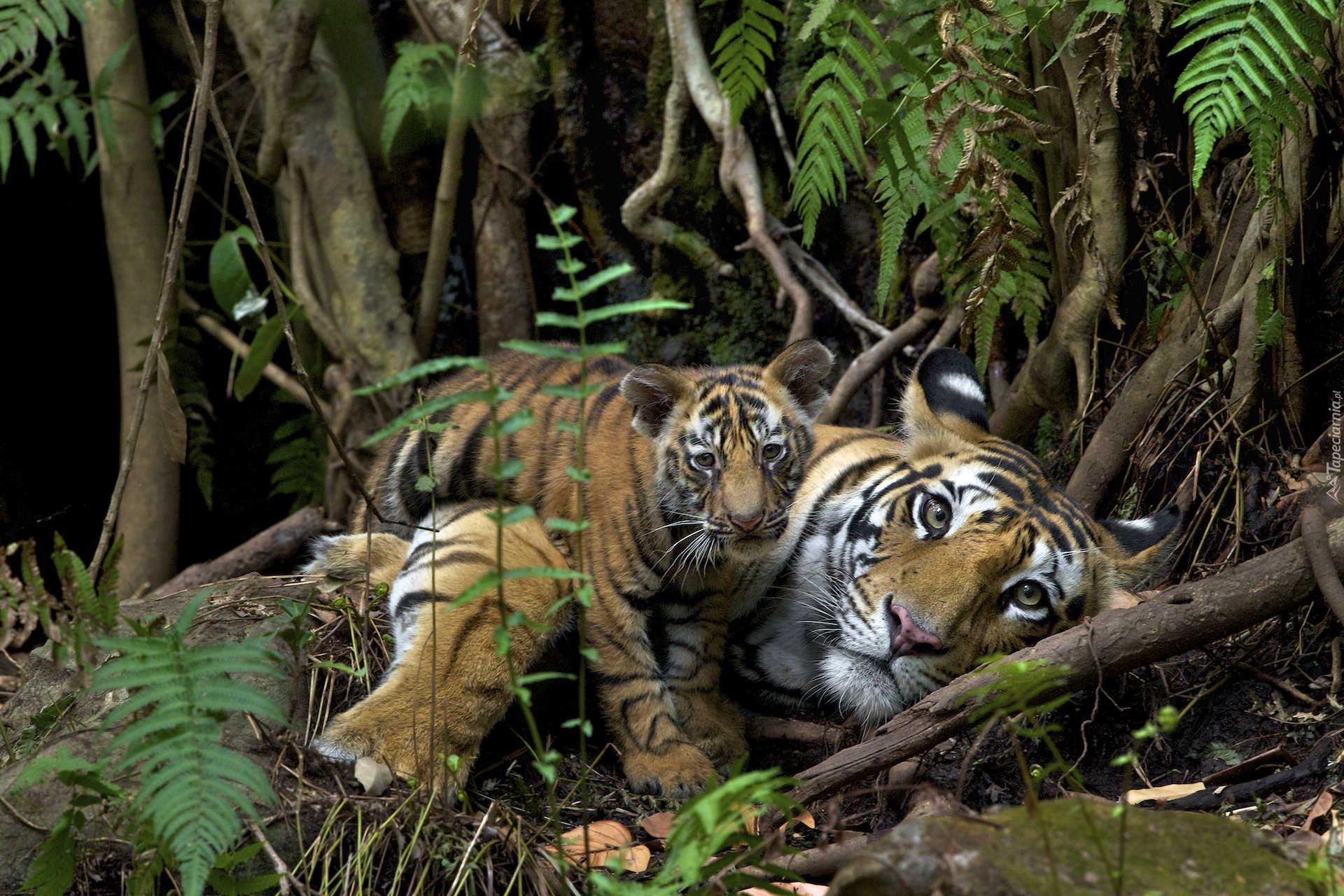 Edytor tapety: Tygrysica, Młode, Las