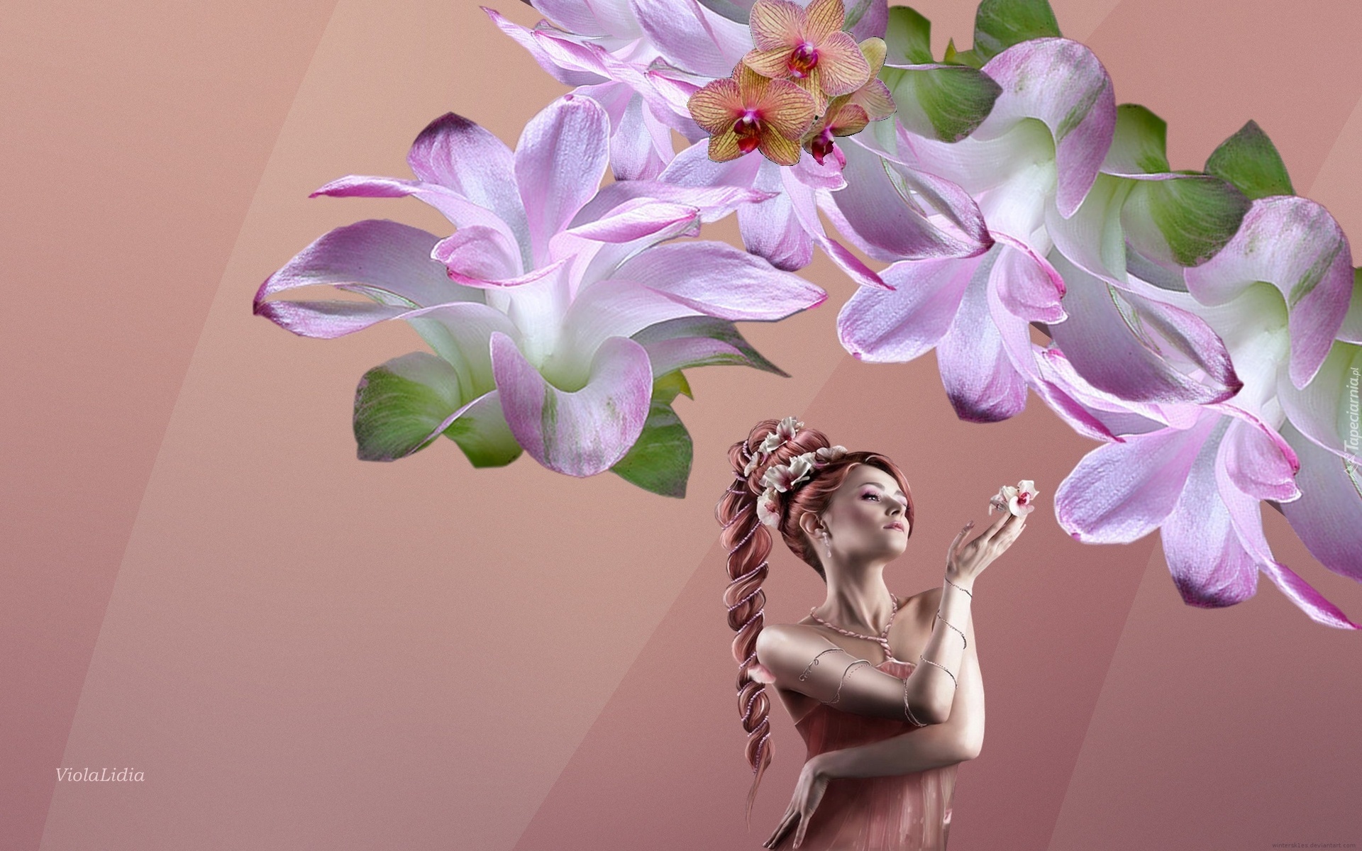 Edytor tapety: Grafika, Kwiaty, Storczyki, Kobieta