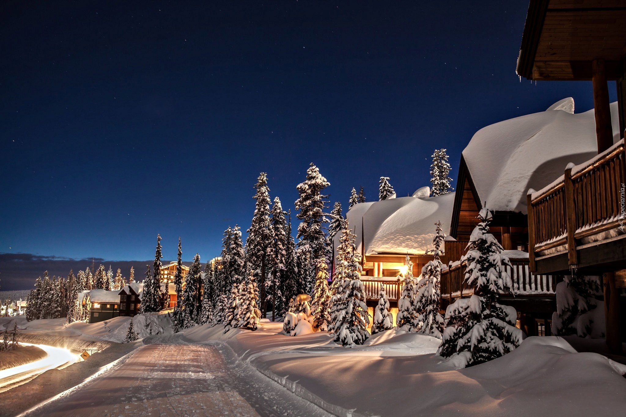 Edytor tapety: Ulica, Domy, Wieczór, Zima