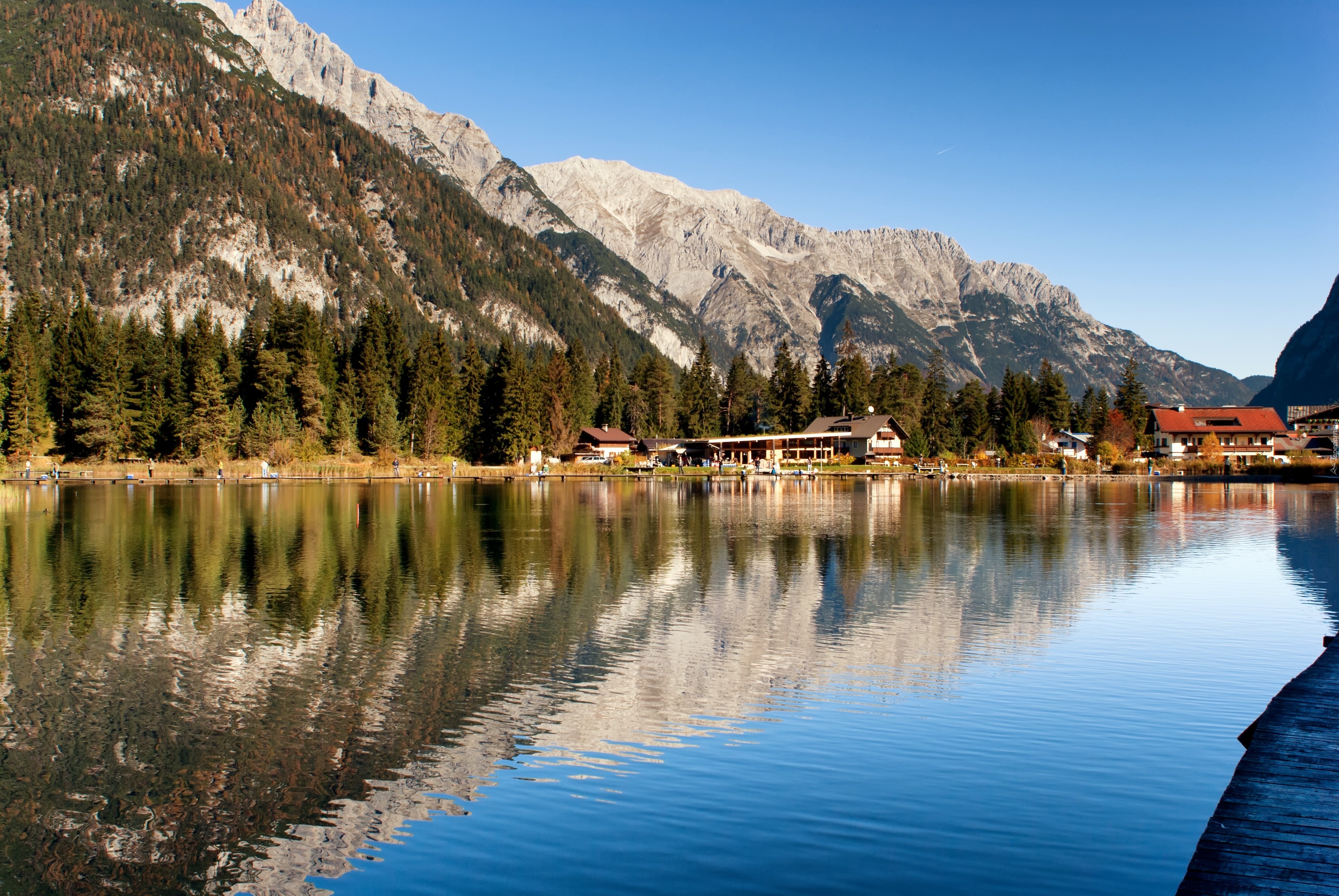 Edytor tapety: Góry, Jezioro, Las, Austria, Domy