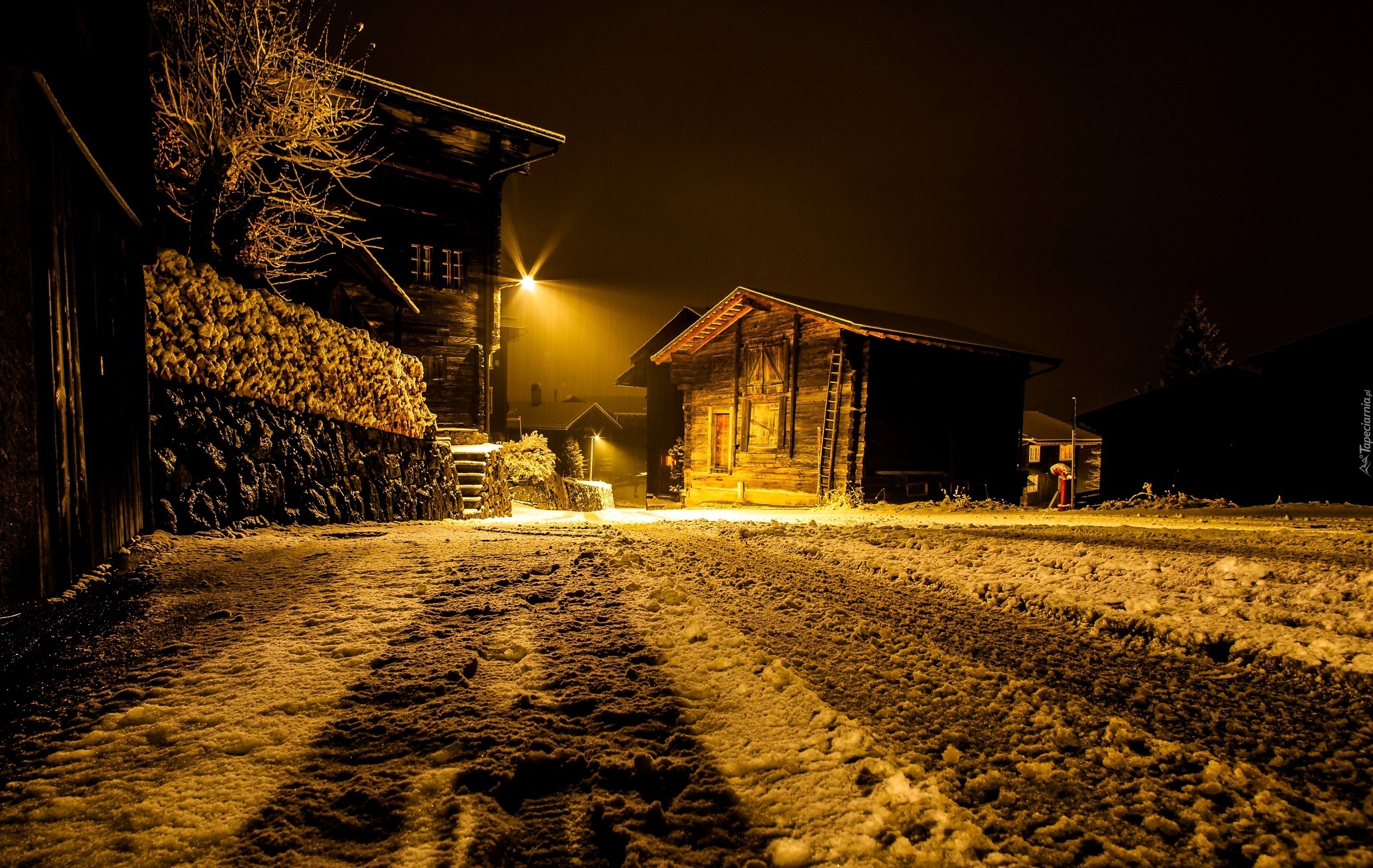 Edytor tapety: Zima, Drewniany, Dom, Noc
