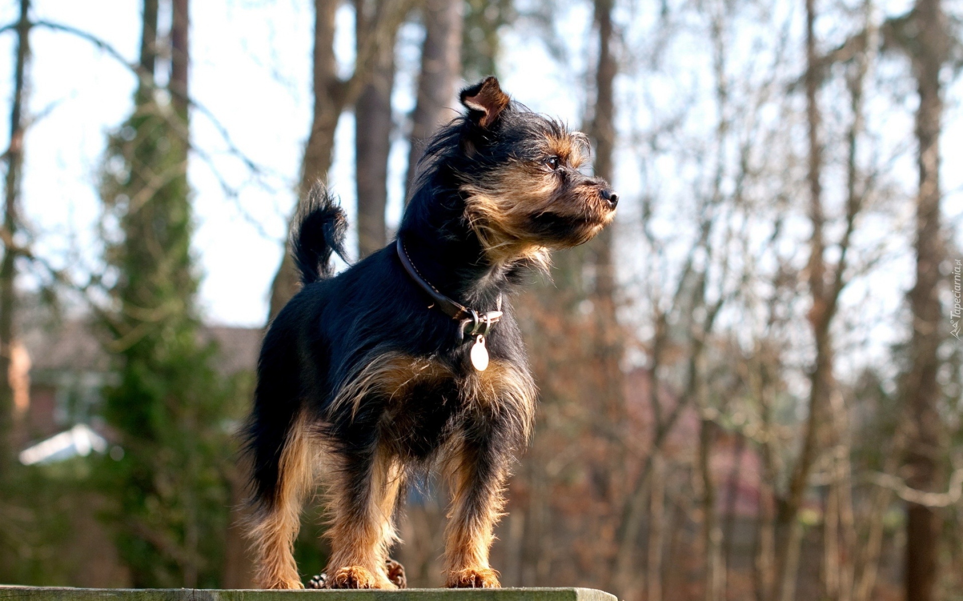 Edytor tapety: Mały, Pies, Obroża, Medalion, Drzewa