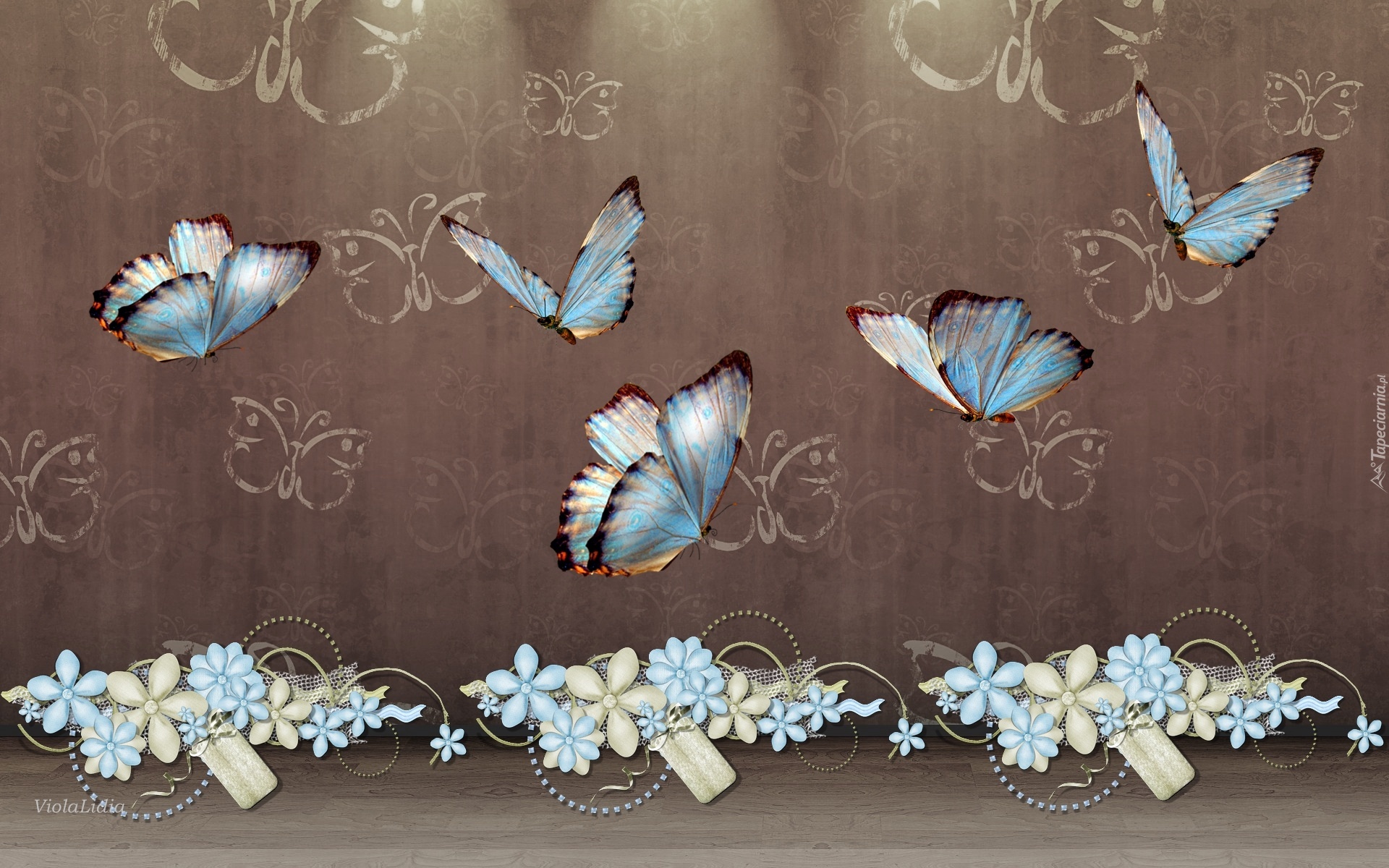 Edytor tapety: Grafika, Kwiaty, Motyle