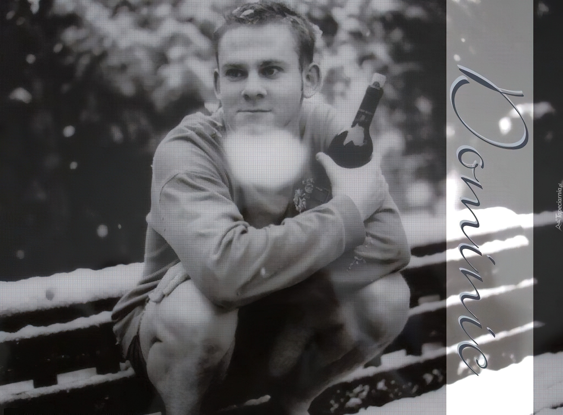 Edytor tapety: Dominic Monaghan,butelka, śnieg