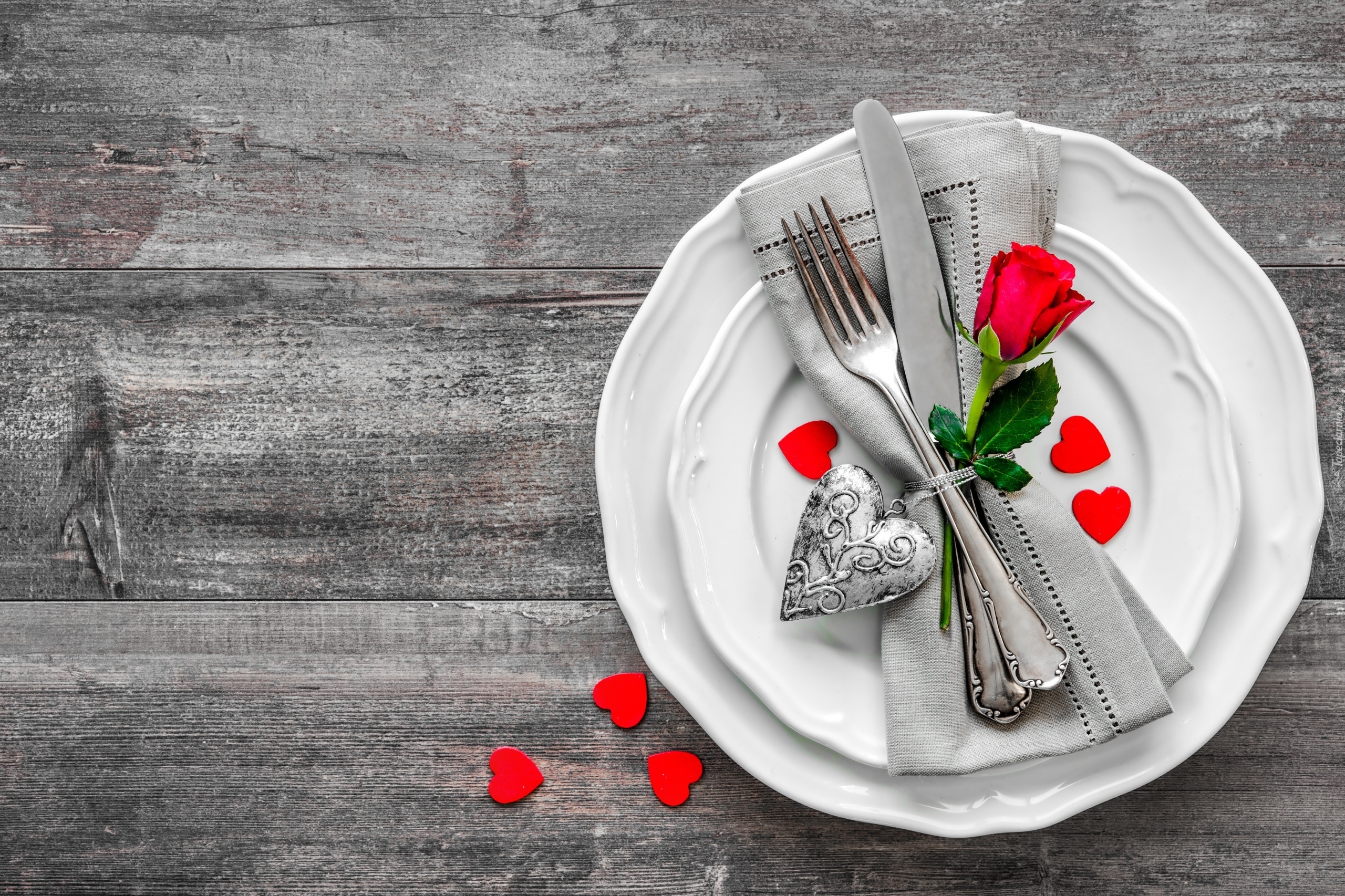 Edytor tapety: Talerze, Sztućce, Serduszka, Róża