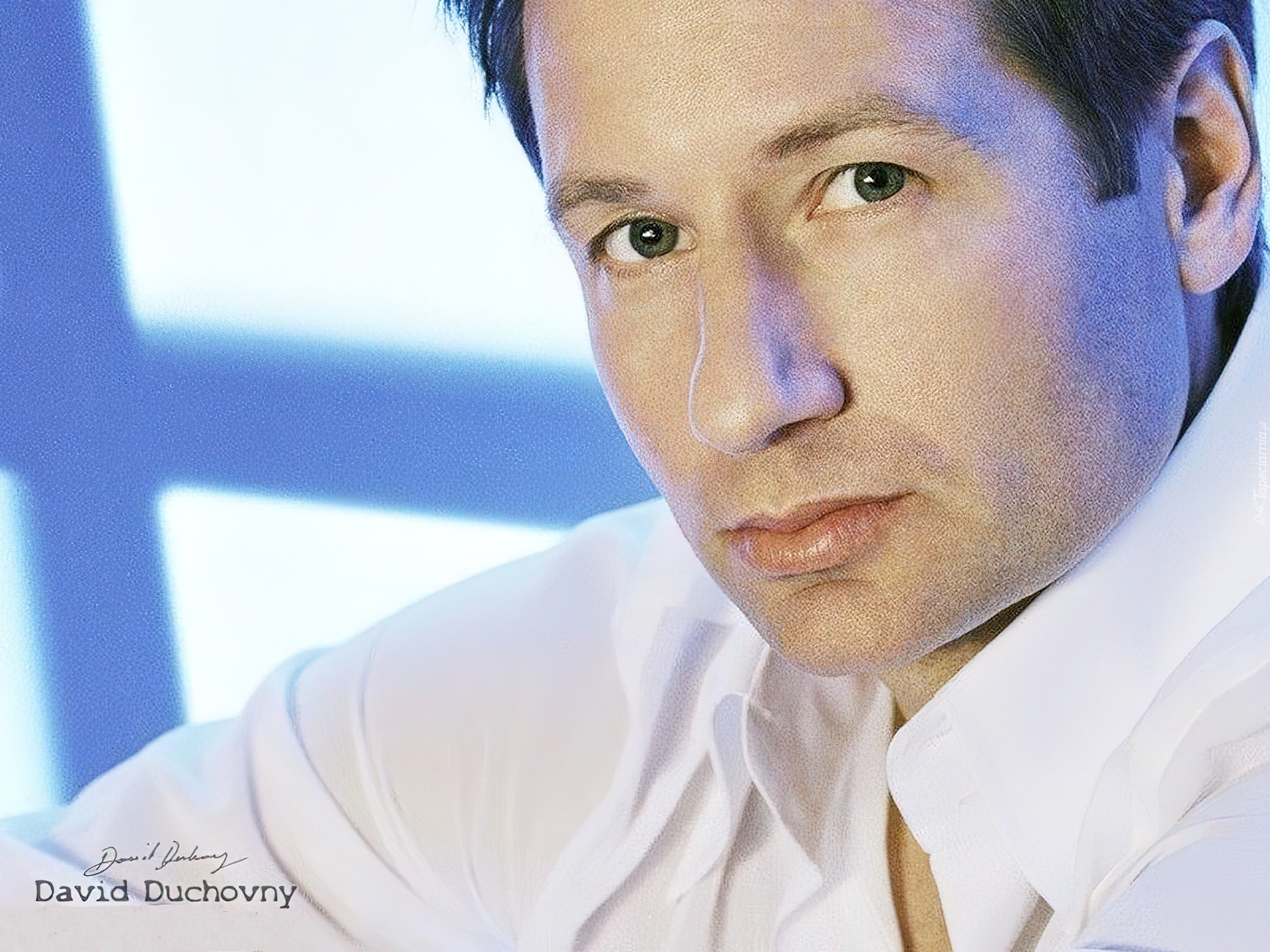 Edytor tapety: David Duchovny,biała koszula, zielone oczy