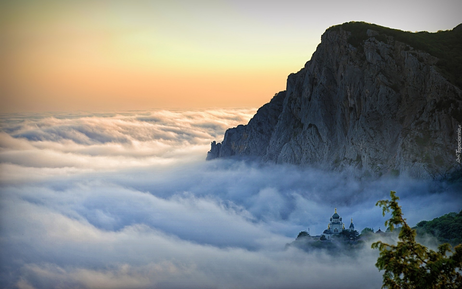 Edytor tapety: Góry, Chmury, Pałac, Drzewo