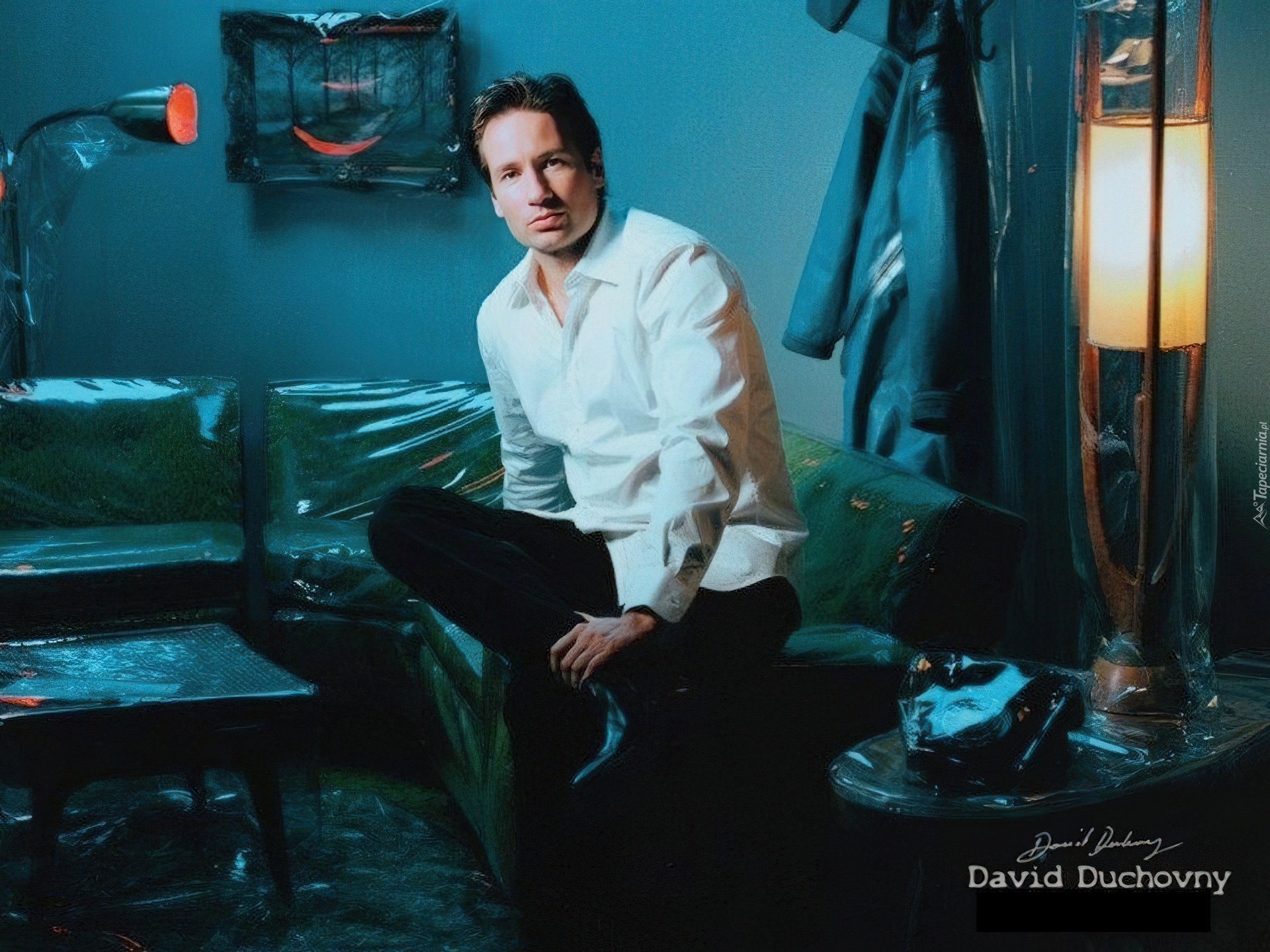 Edytor tapety: David Duchovny,biała koszula, czarne spodnie