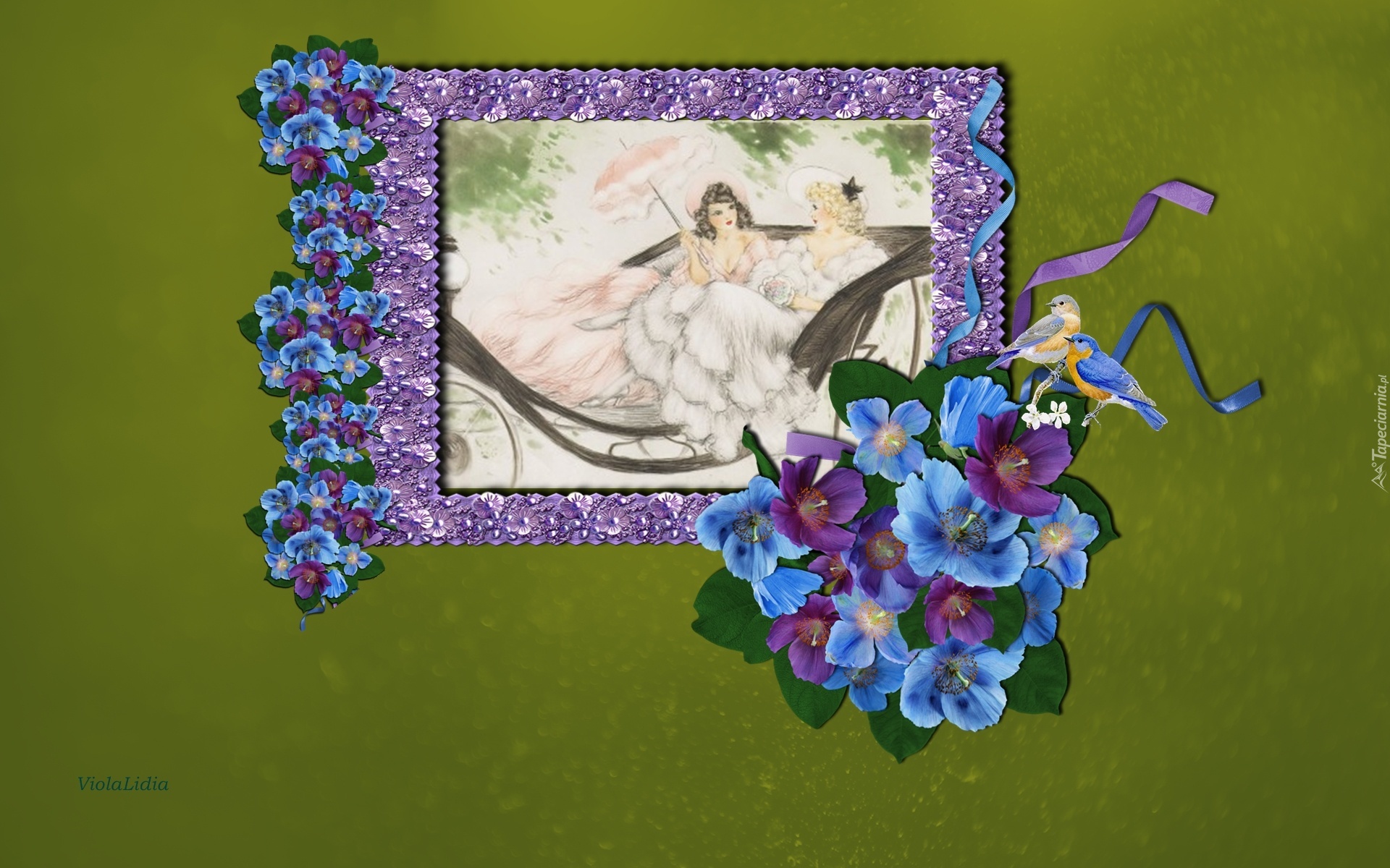 Edytor tapety: Rysunek, Kobiety, Ramka, Kwiaty
