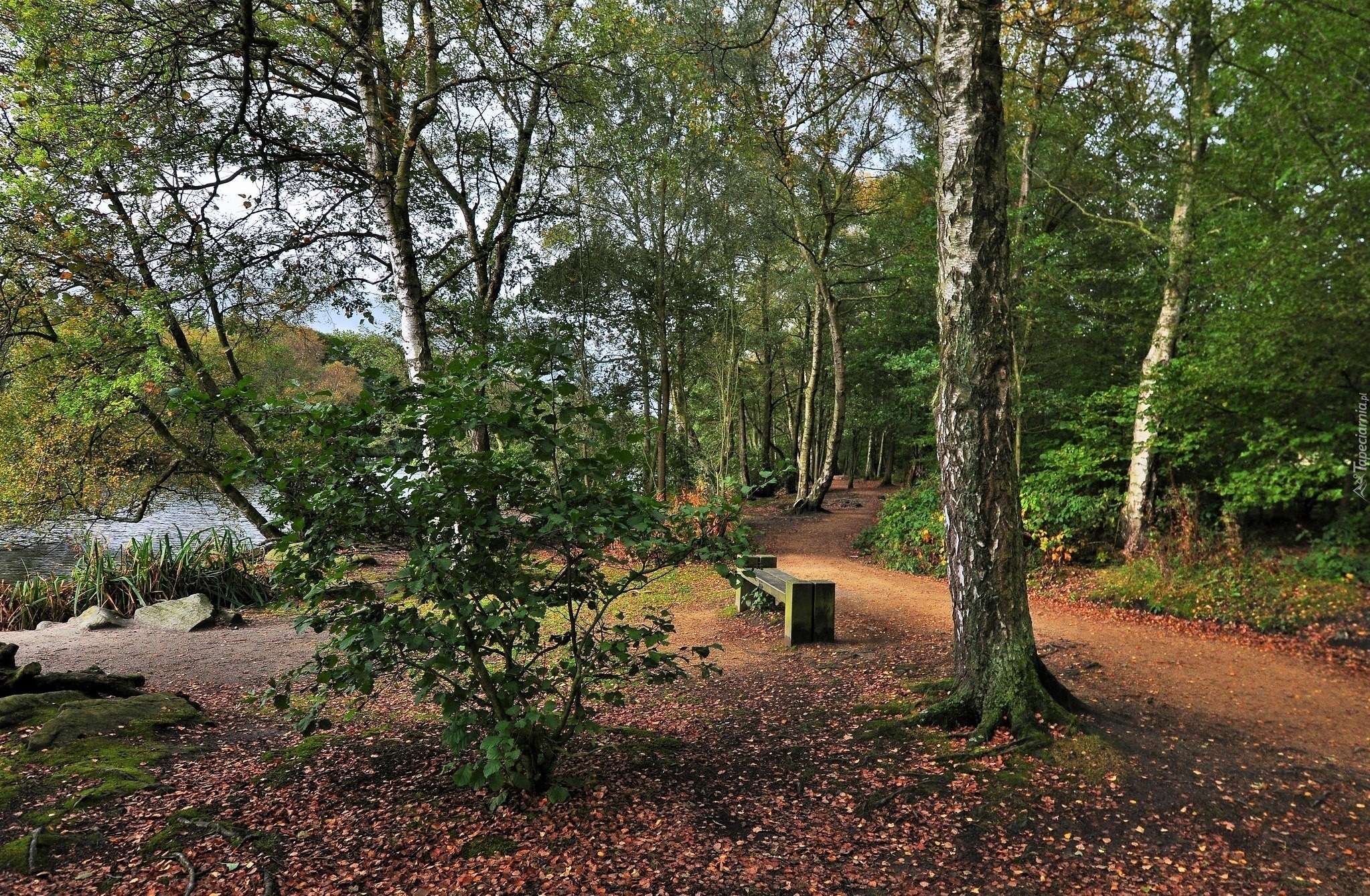 Edytor tapety: Park, Droga, Rzeczka, Ławka