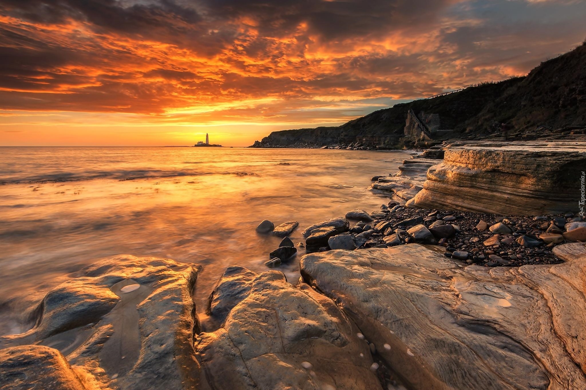 Edytor tapety: Wybrzeże, Skały, Latarnia, Morska, Zachód, Słońca
