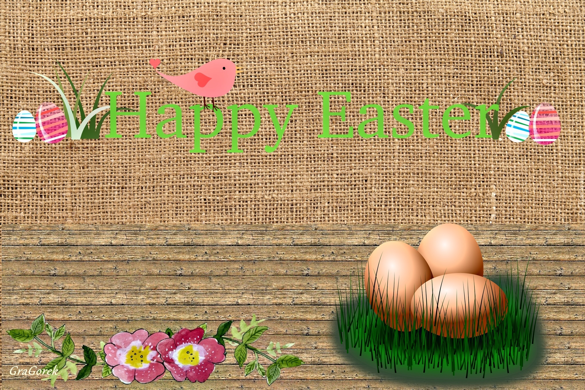 Edytor tapety: Wielkanoc, Jajka, Kwiaty, Tkanina, Napis