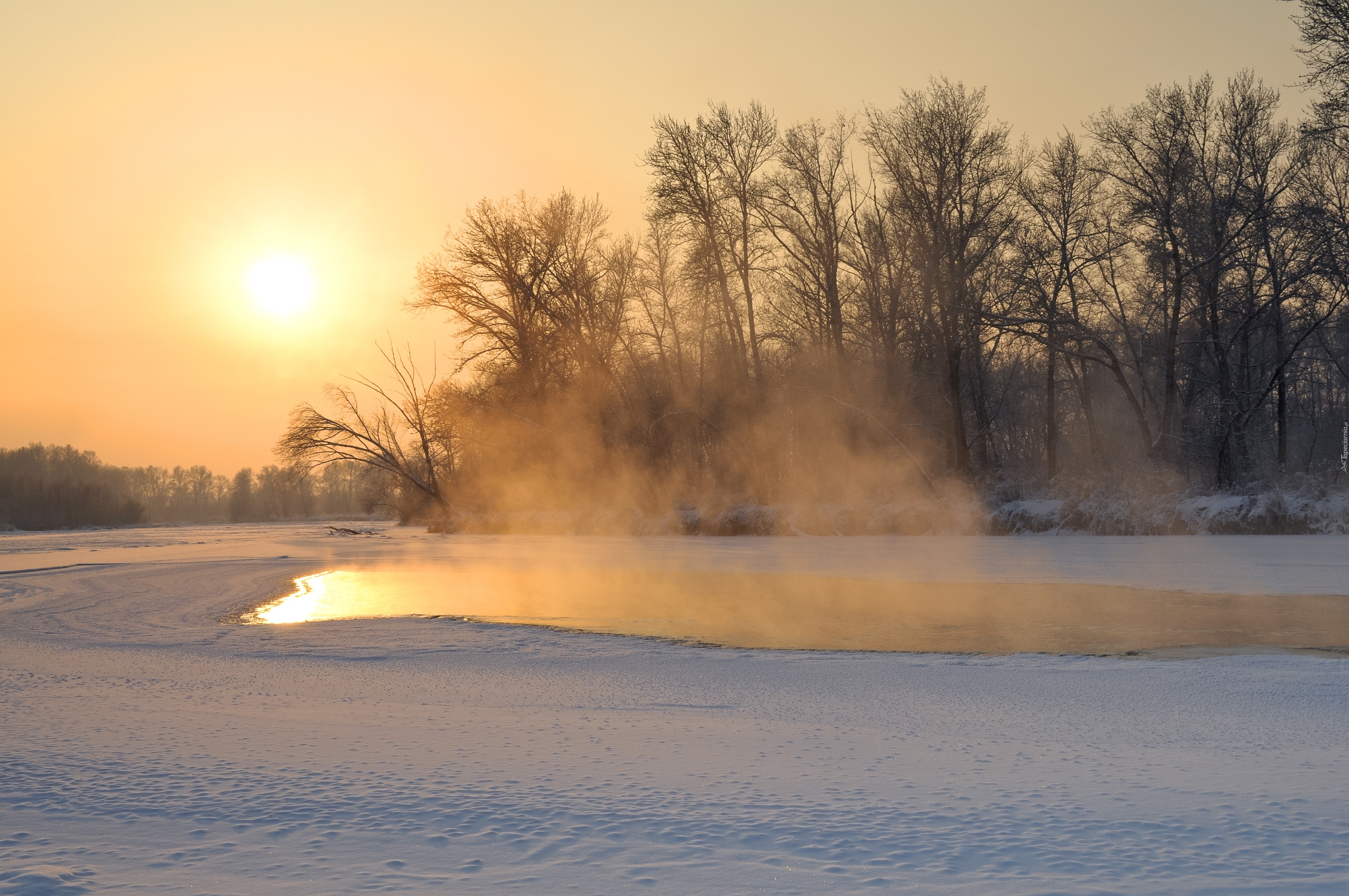 Edytor tapety: Zima, Wschód słońca, Drzewa