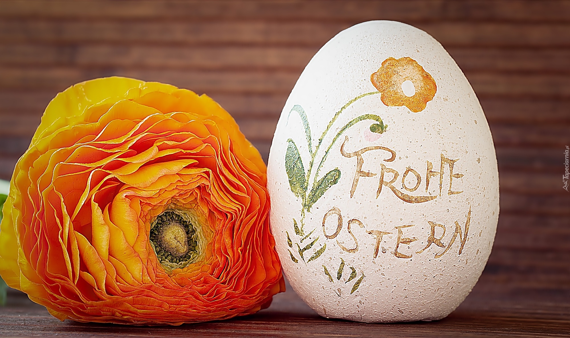 Edytor tapety: Wielkanoc, Malowane, Jajko, Pomarańczowy, Jaskier