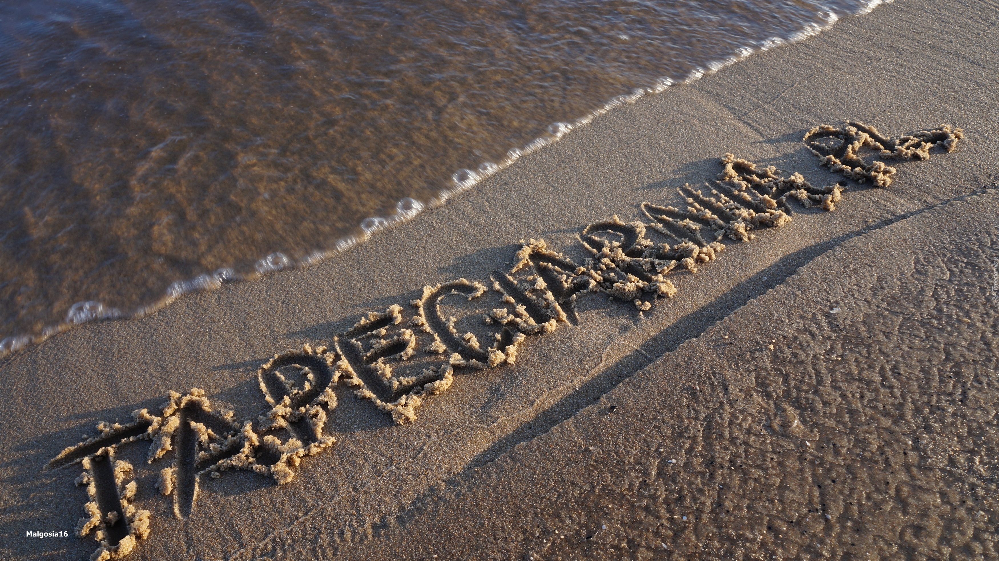 Edytor tapety: Plaża, Woda, Piasek, Napis, Tapeciarnia