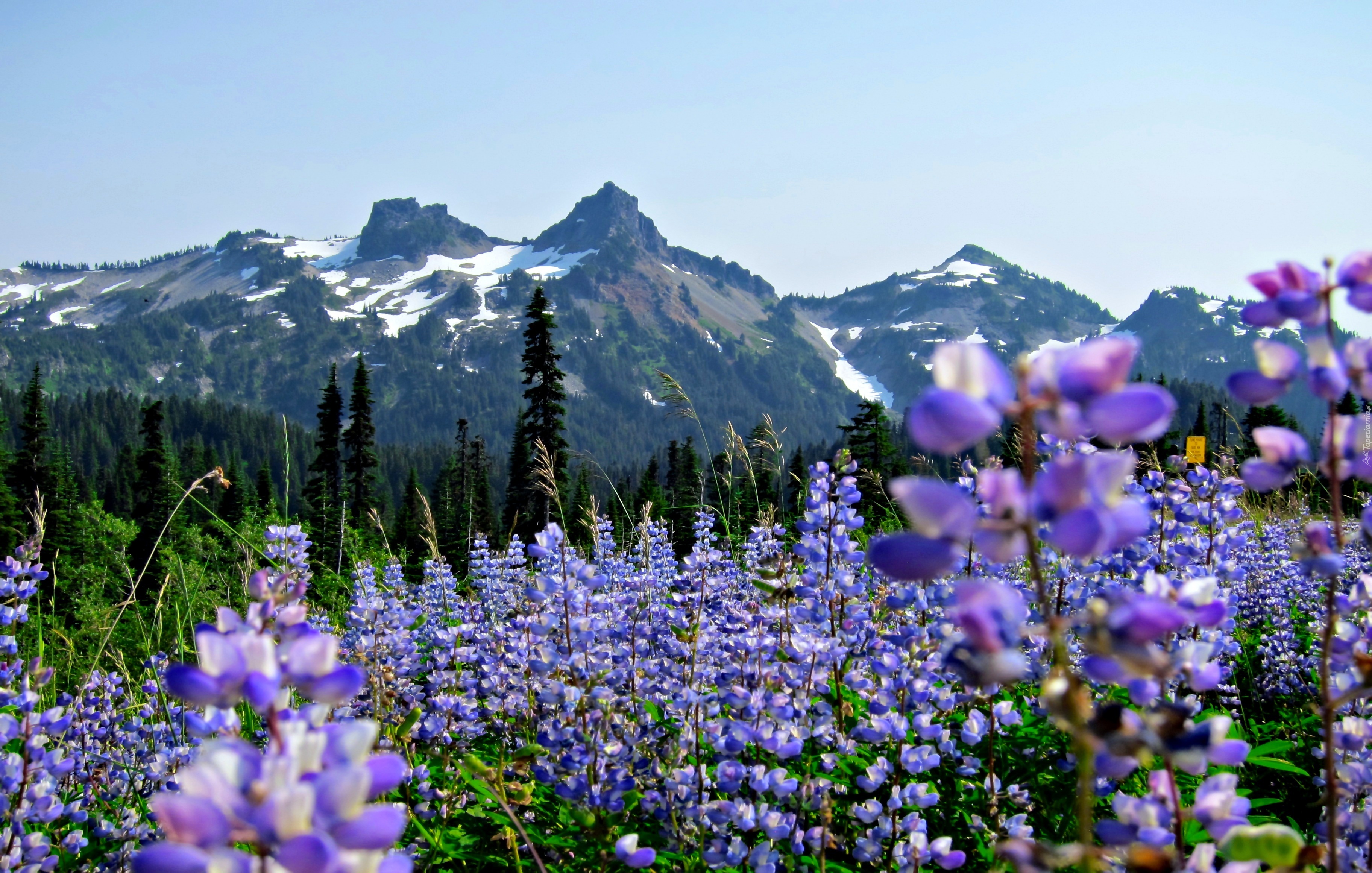 Edytor tapety: Łubin, Kwiaty, Lasy, Góry