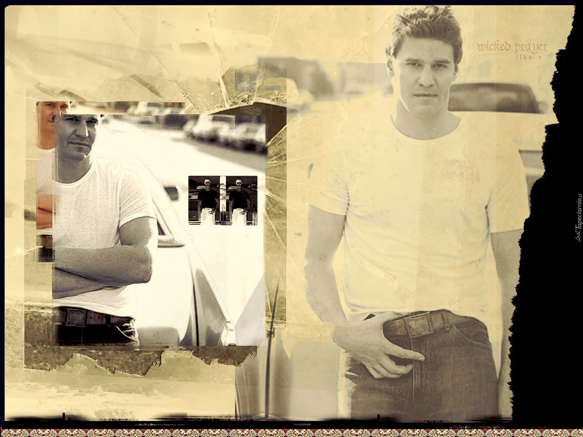 Edytor tapety: David Boreanaz,biały t-shirt, pasek