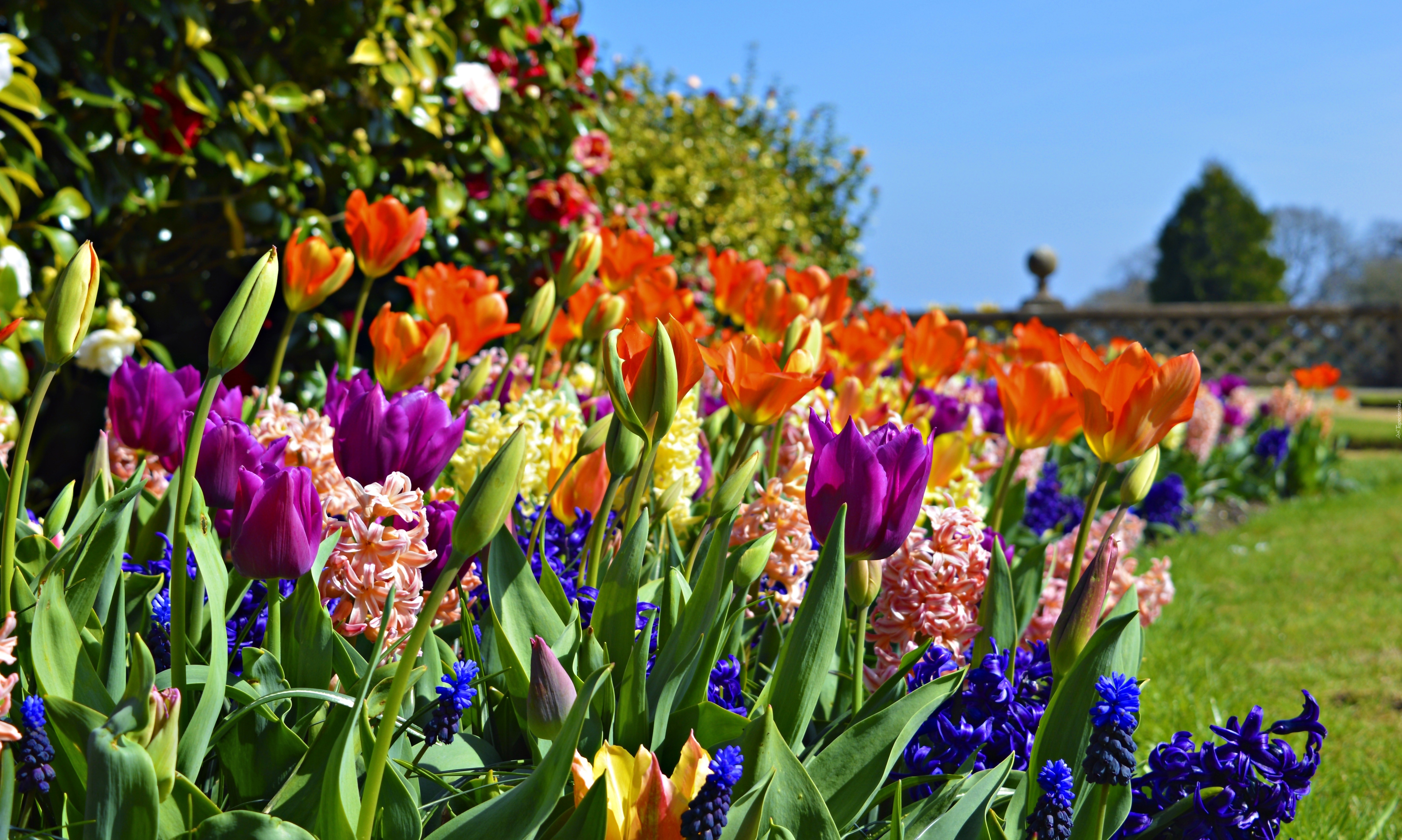 Edytor tapety: Tulipany, Hiacynty, Kwiaty, Ogród, Wiosna