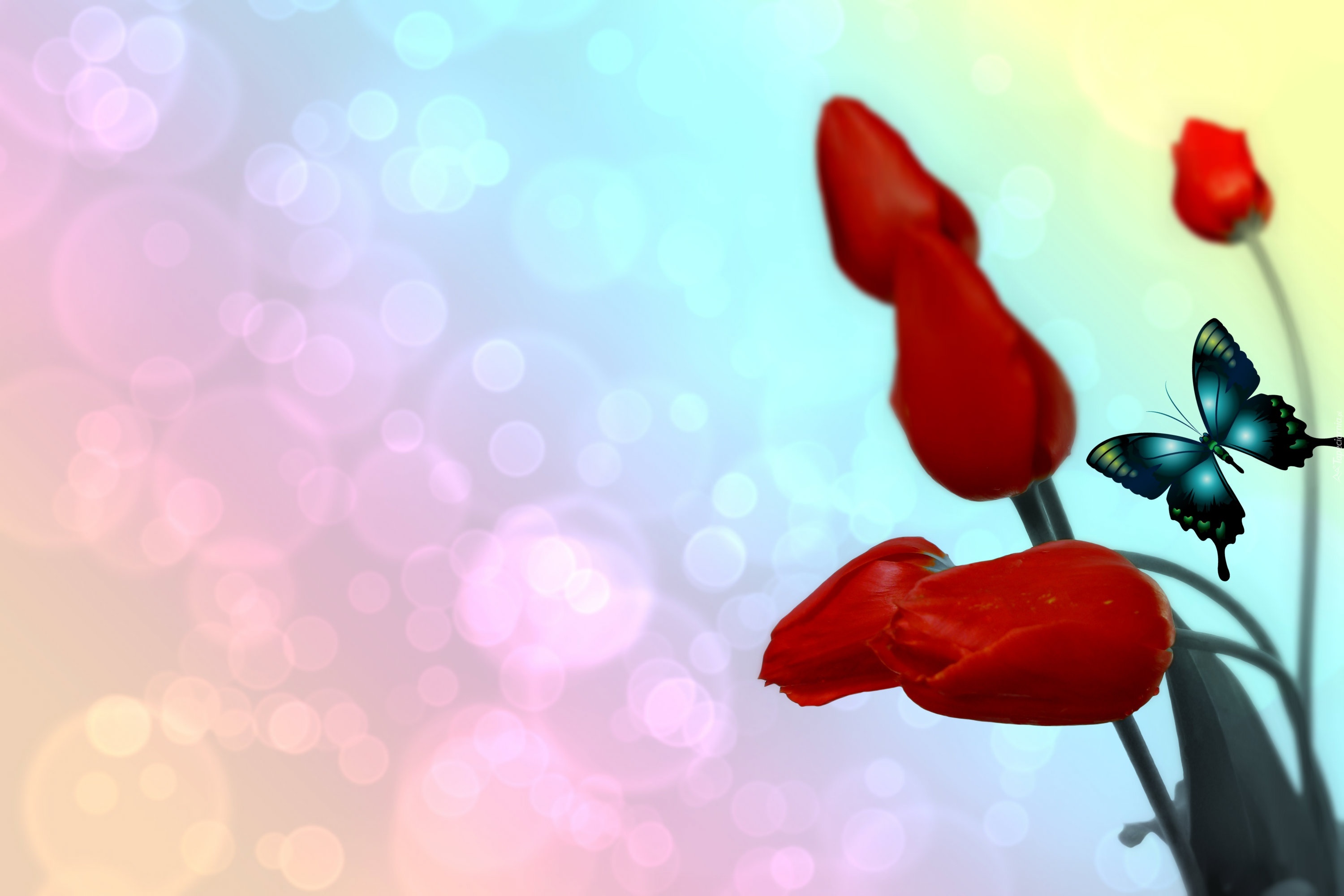 Edytor tapety: Tulipany, Motylek