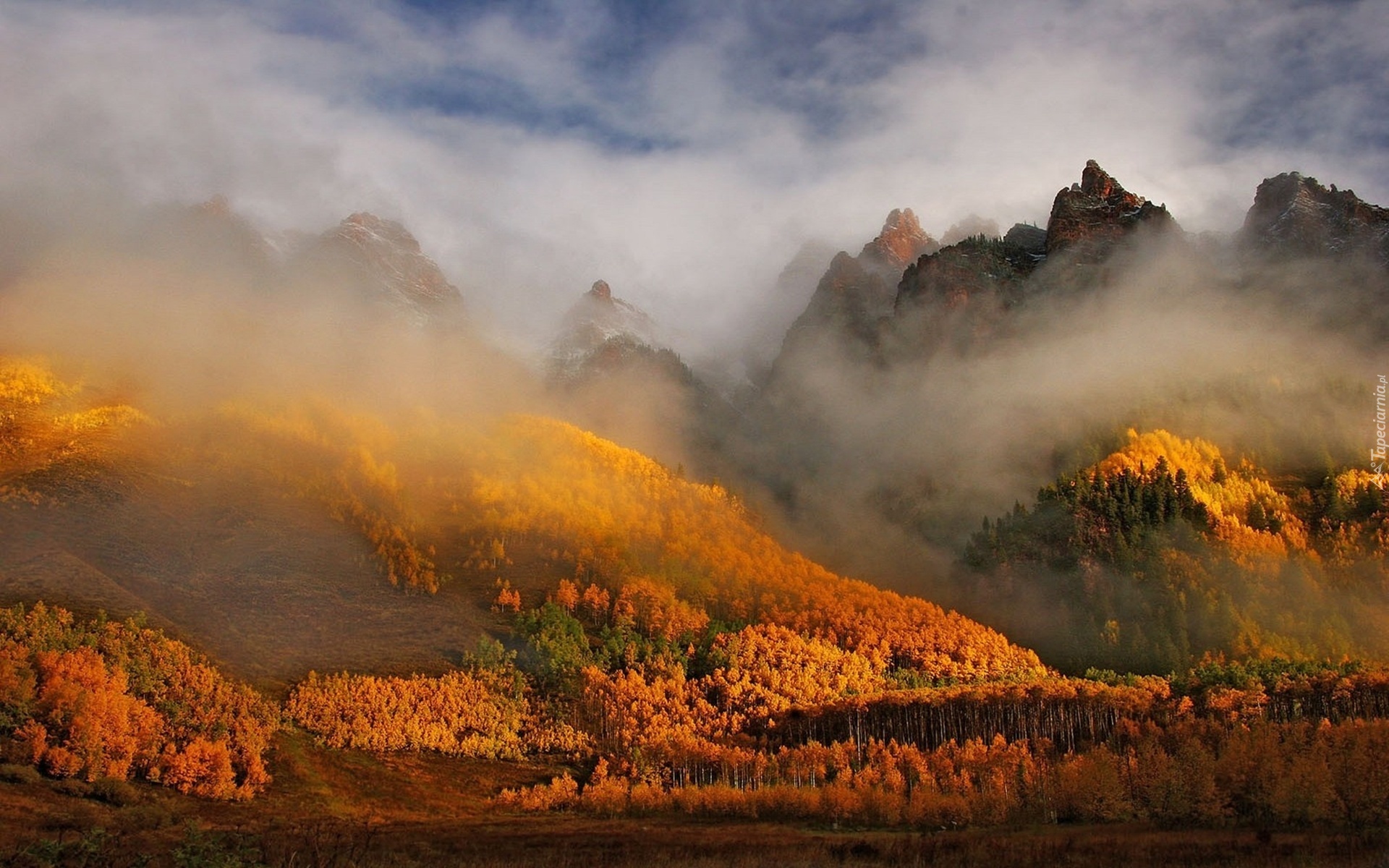 Edytor tapety: Jesień, Las, Góry, Chmury