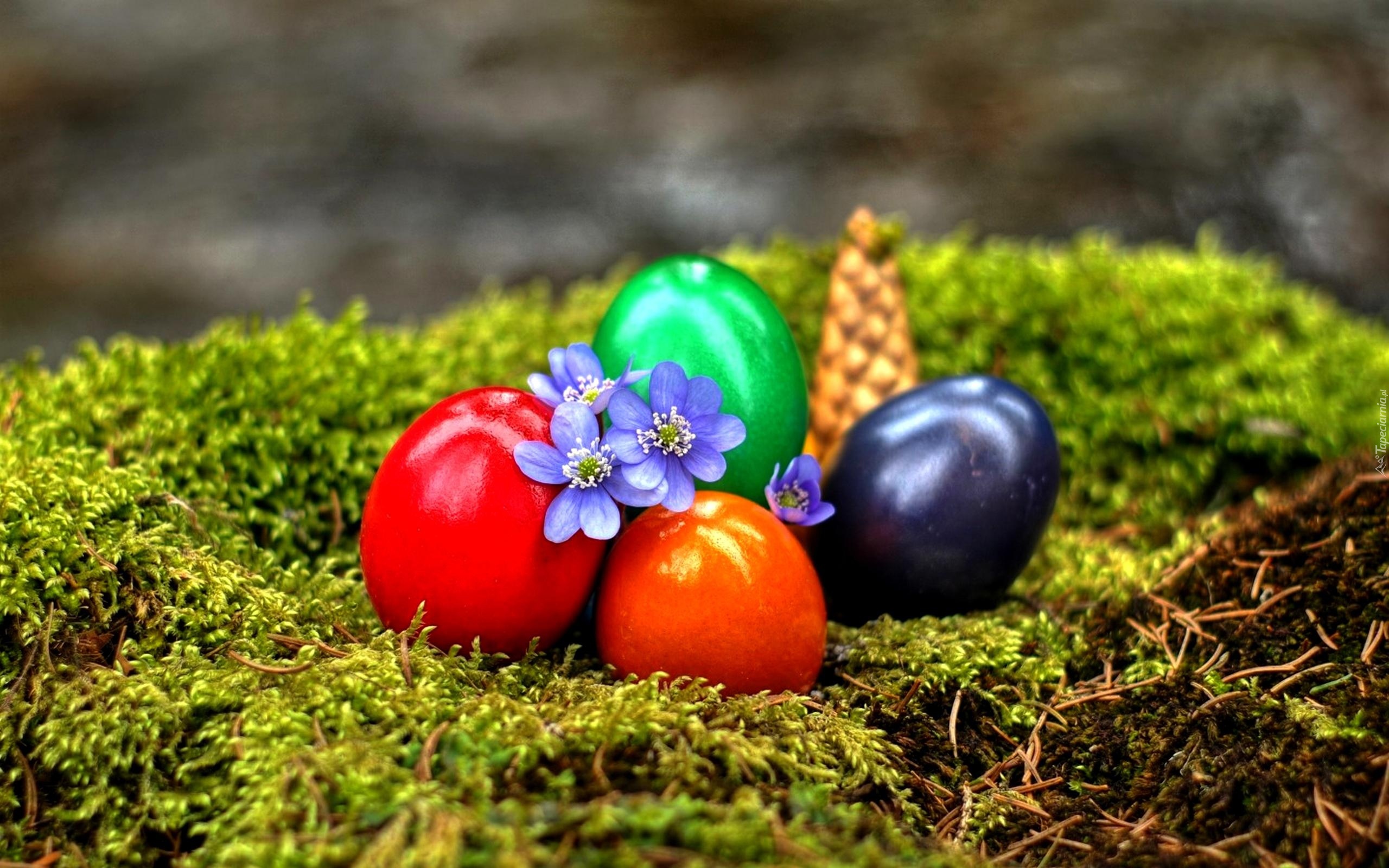 Edytor tapety: Pisanki, Przylaszczki, Mech, Szyszka