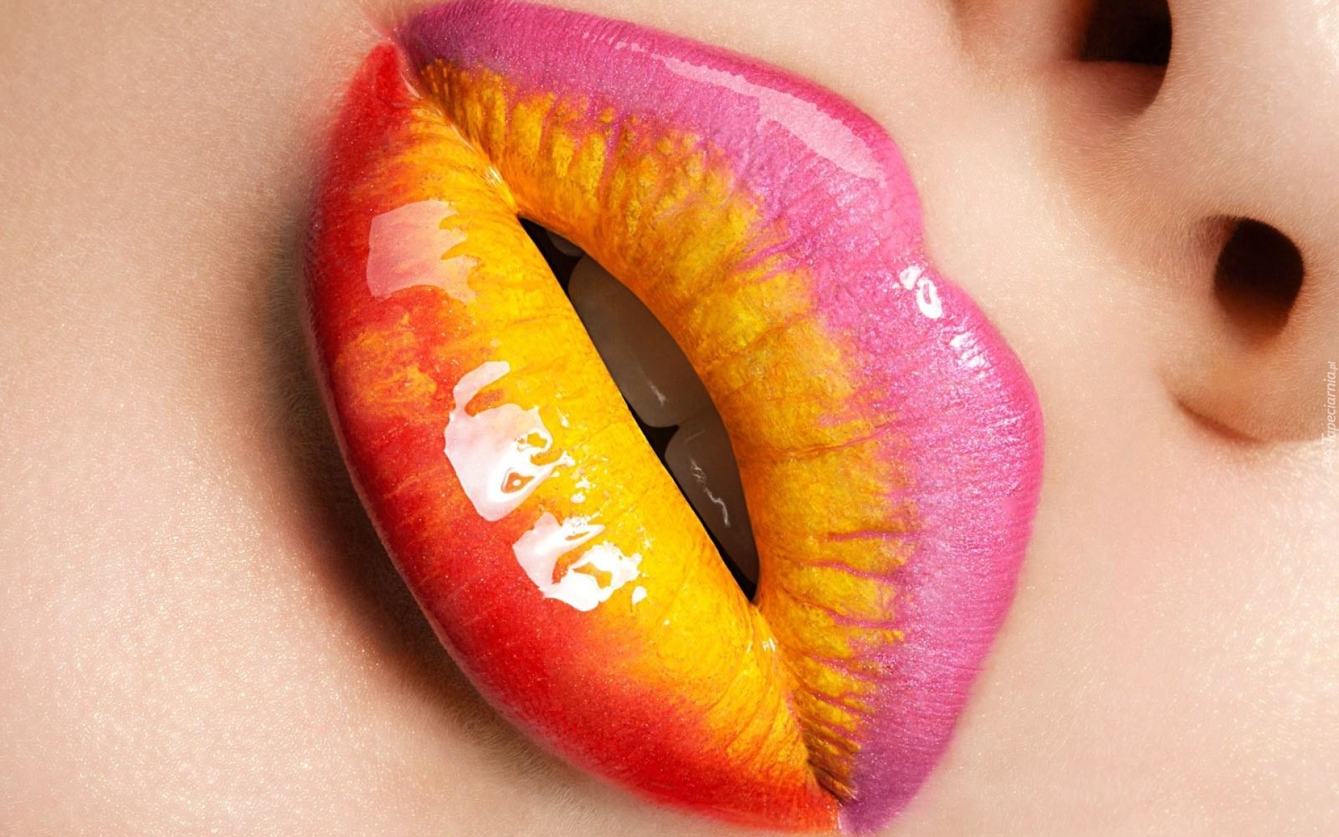 Edytor tapety: Kolorowe, Usta, Twarz, Kobiety