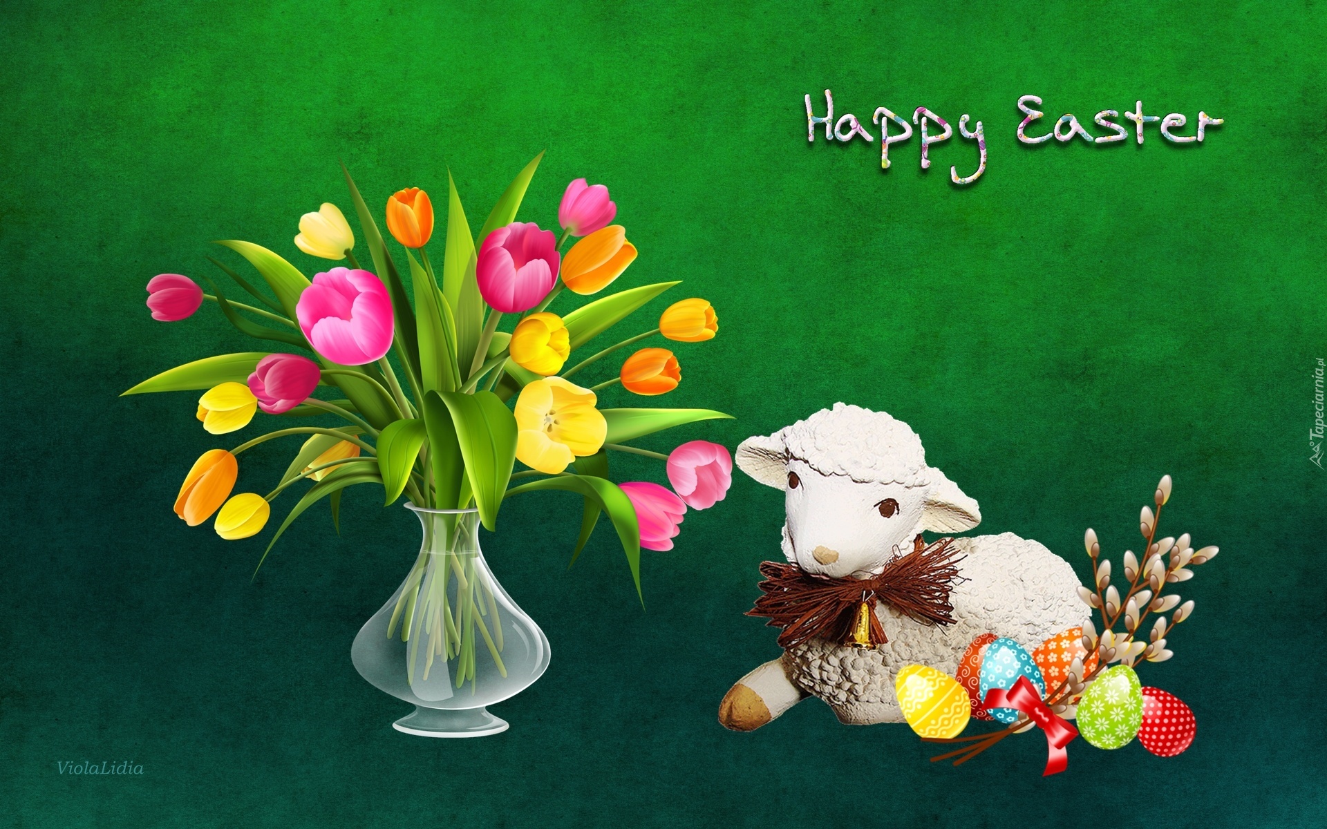 Edytor tapety: Grafika, Kompozycja, Wielkanoc, Bukiet, Tulipany, Baranek
