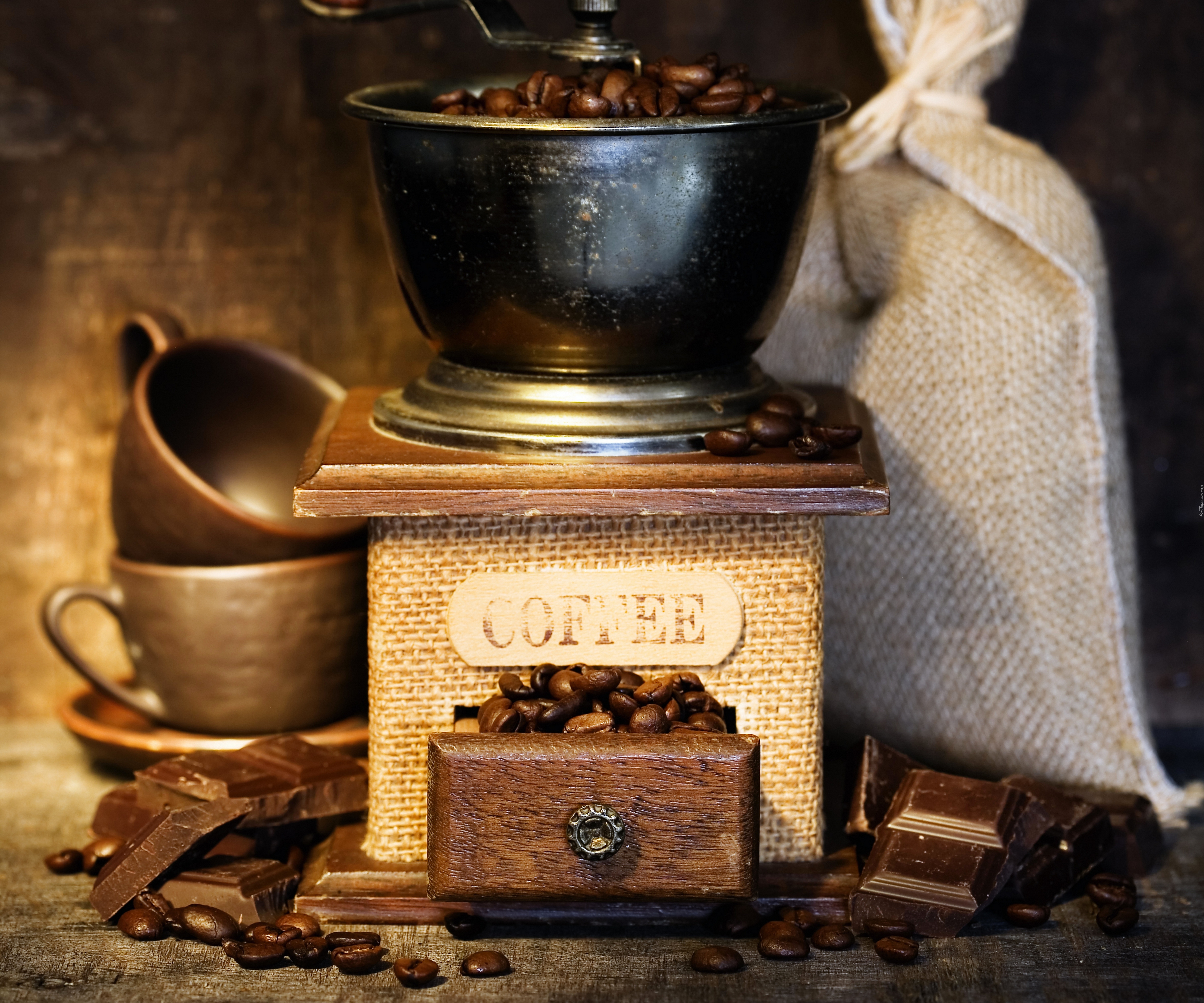 Edytor tapety: Kawa, Młynek do kawy, Filiżanki