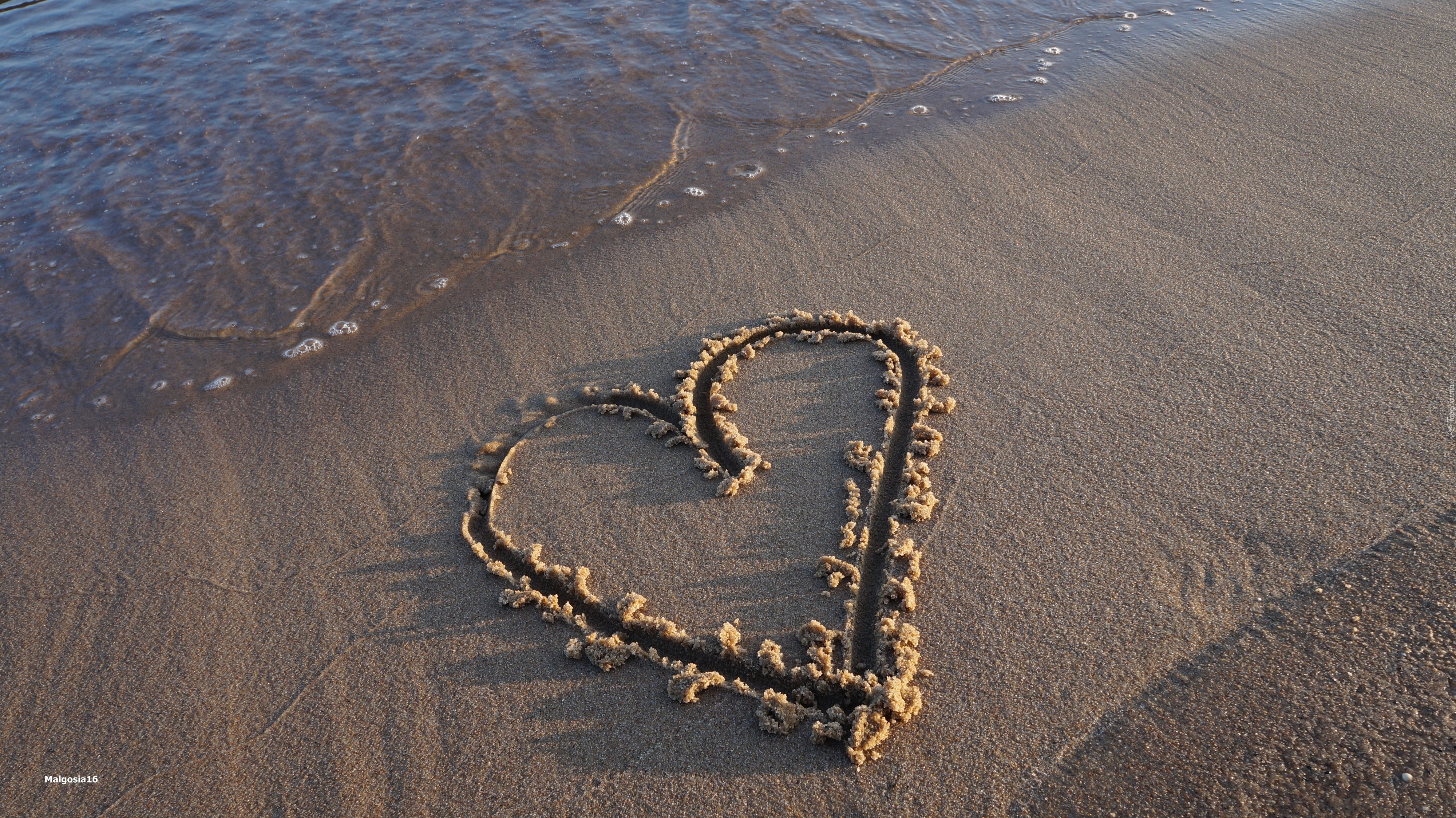 Edytor tapety: Plaża, Piasek, Serce, Woda