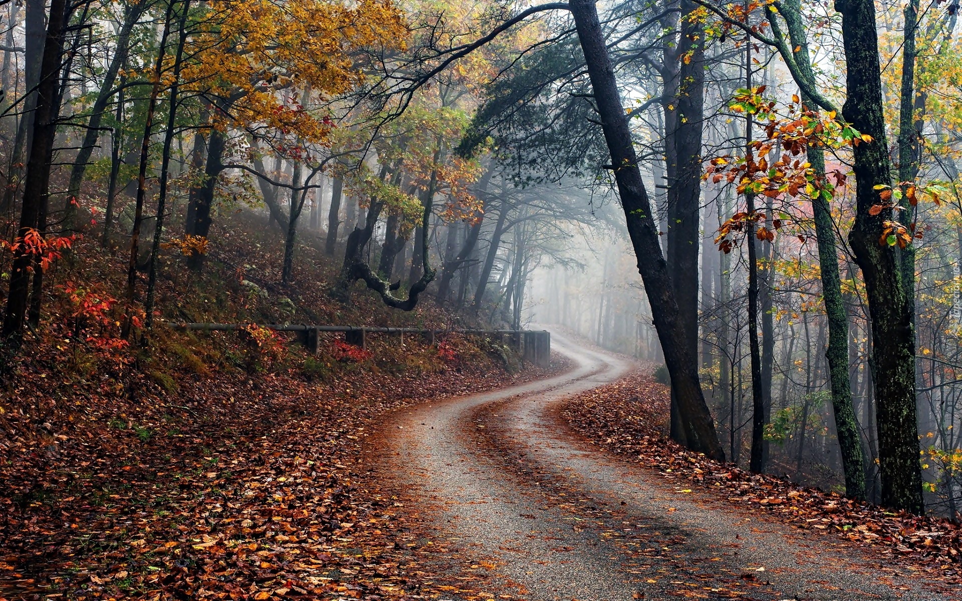 Edytor tapety: Jesień, Droga, Las, Mgła