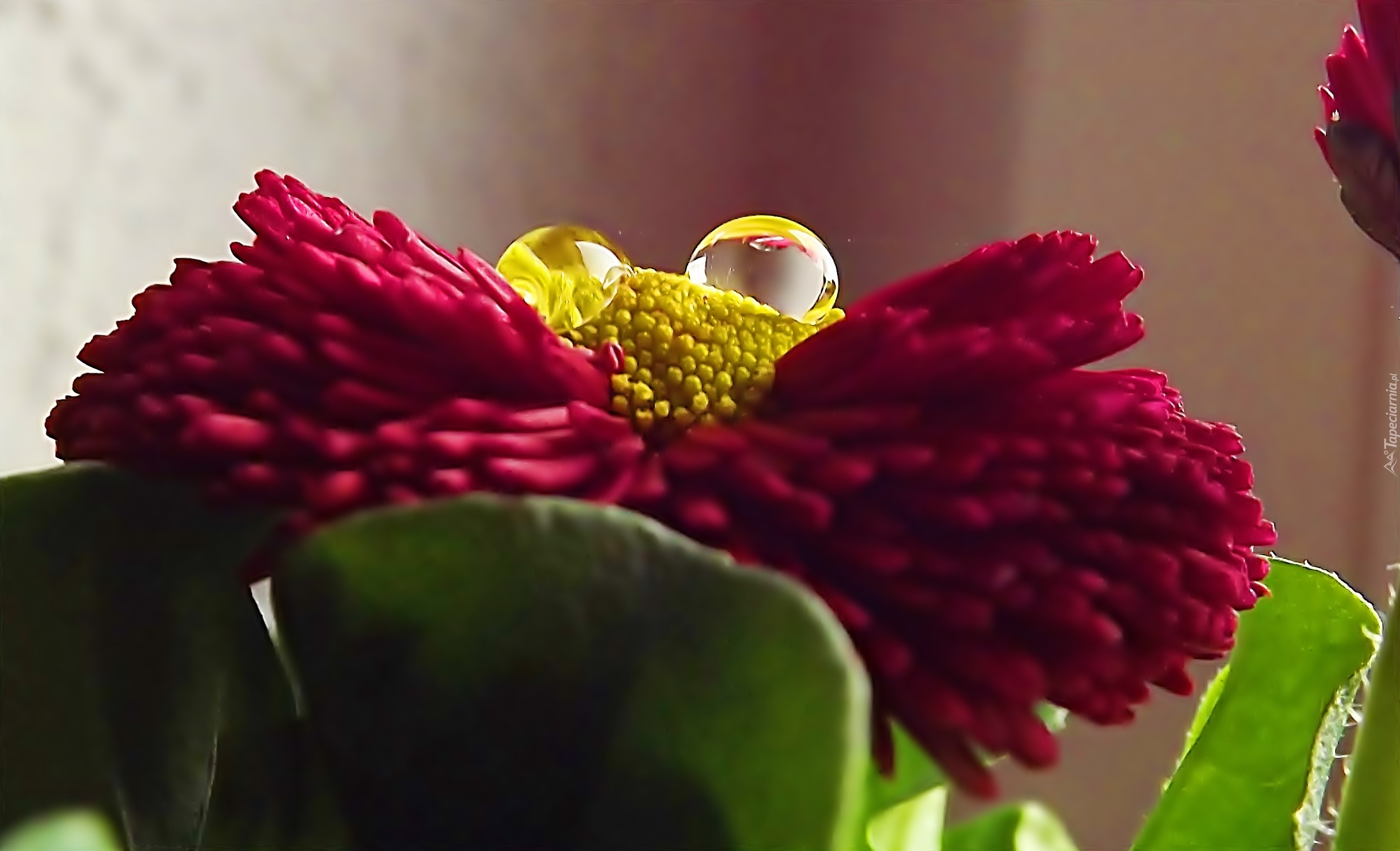 Edytor tapety: Czerwona, Stokrotka, Krople, Wody, Makro