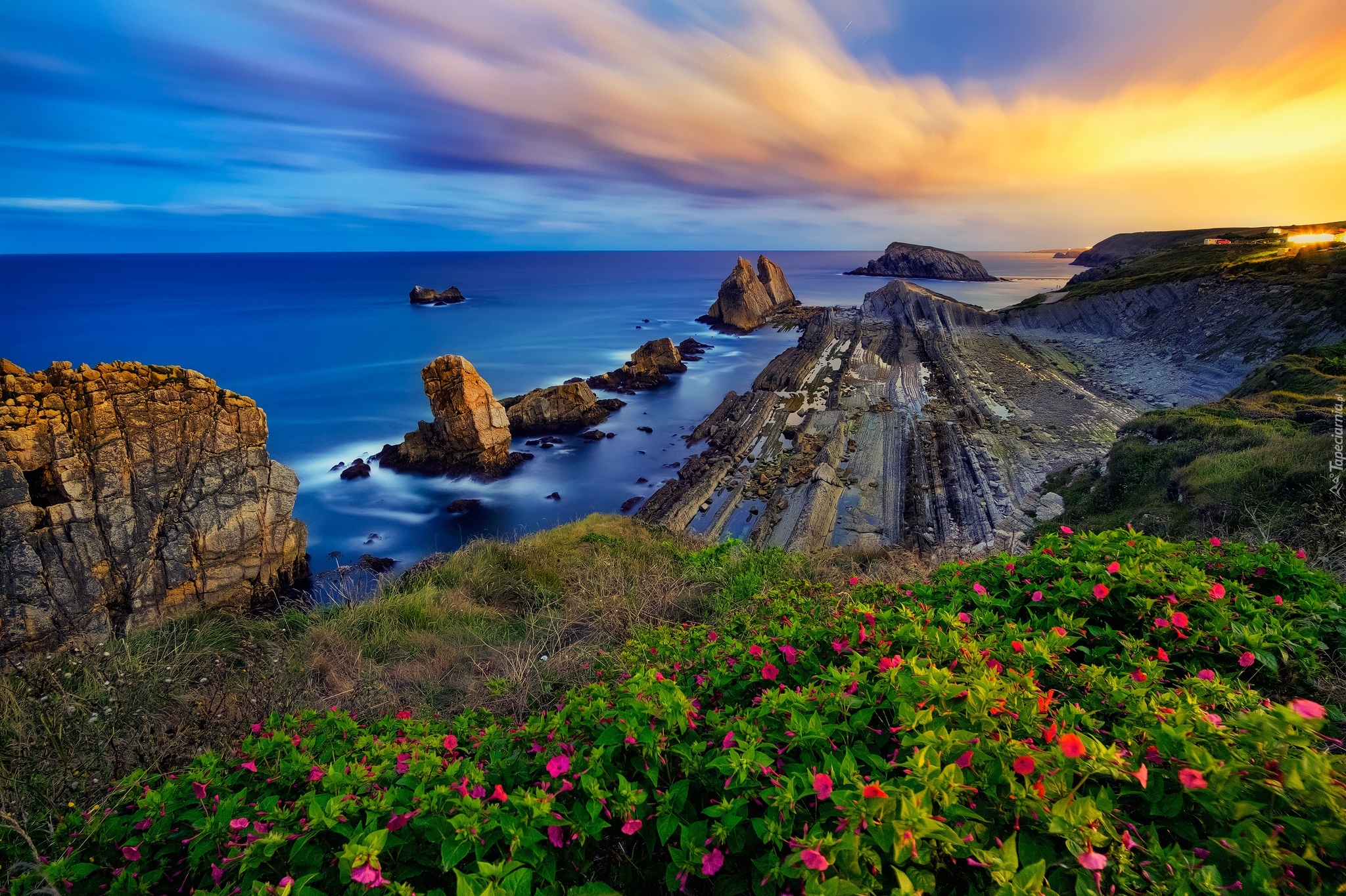 Edytor tapety: Morze, Kamienie, Skały, Wschód Słońca, Wybrzeże