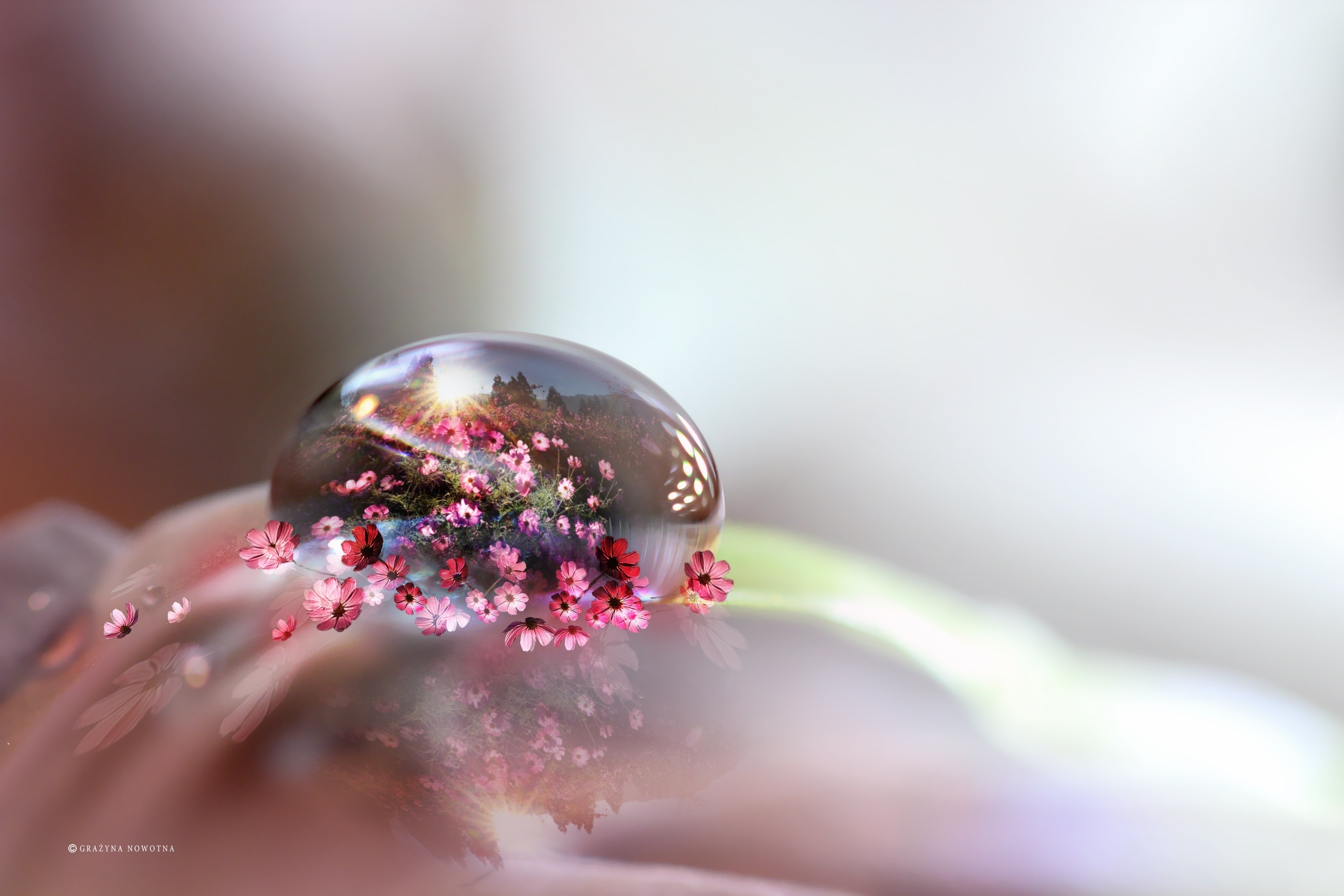 Edytor tapety: Kropla, Wody, Kwiaty, Makro, Fotomontaż
