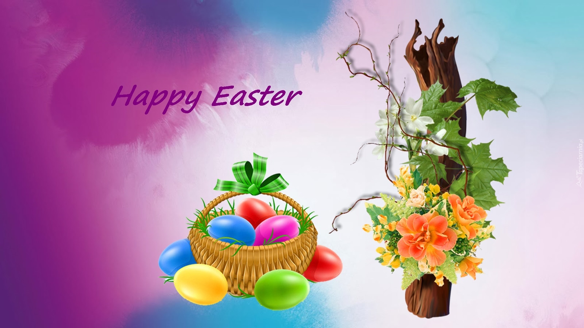 Edytor tapety: Wielkanoc, Kosz, Pisanki, Kwiaty